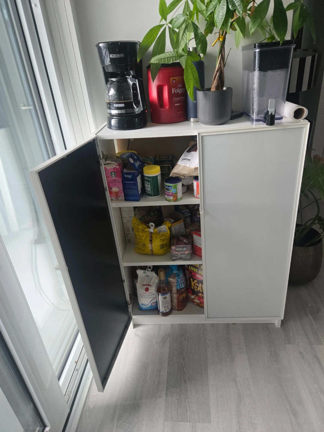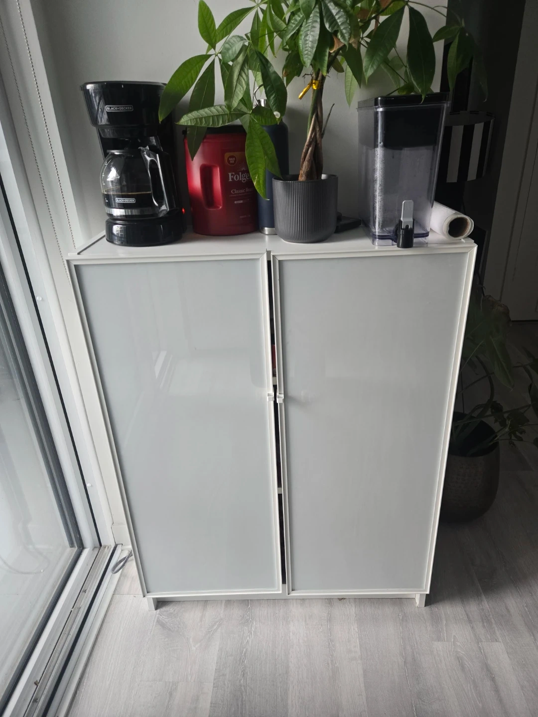 Selling a white cabinet. It's in great condition and ready for a new home. Perfect for extra storage in your kitchen, living room, or anywhere you need it!
