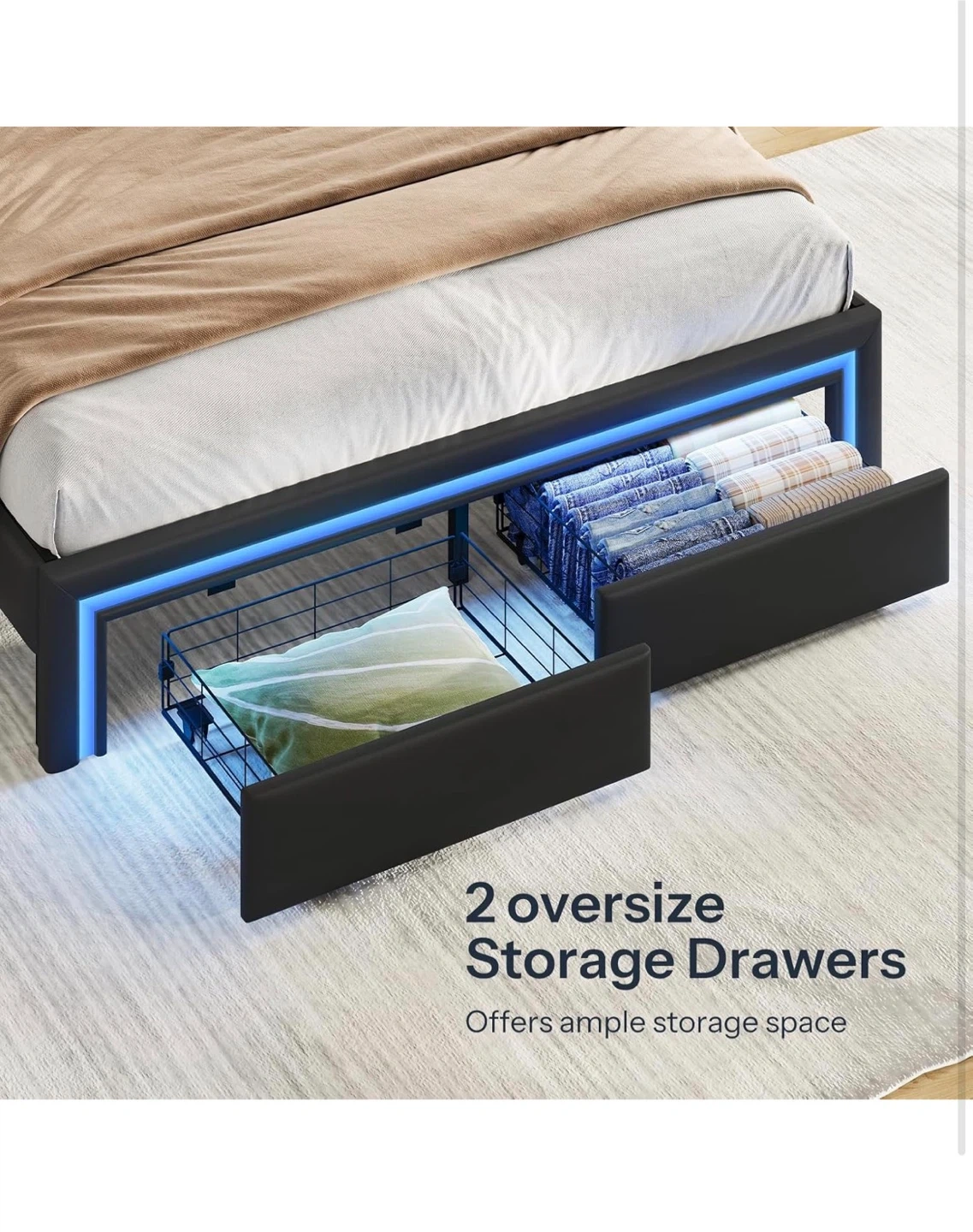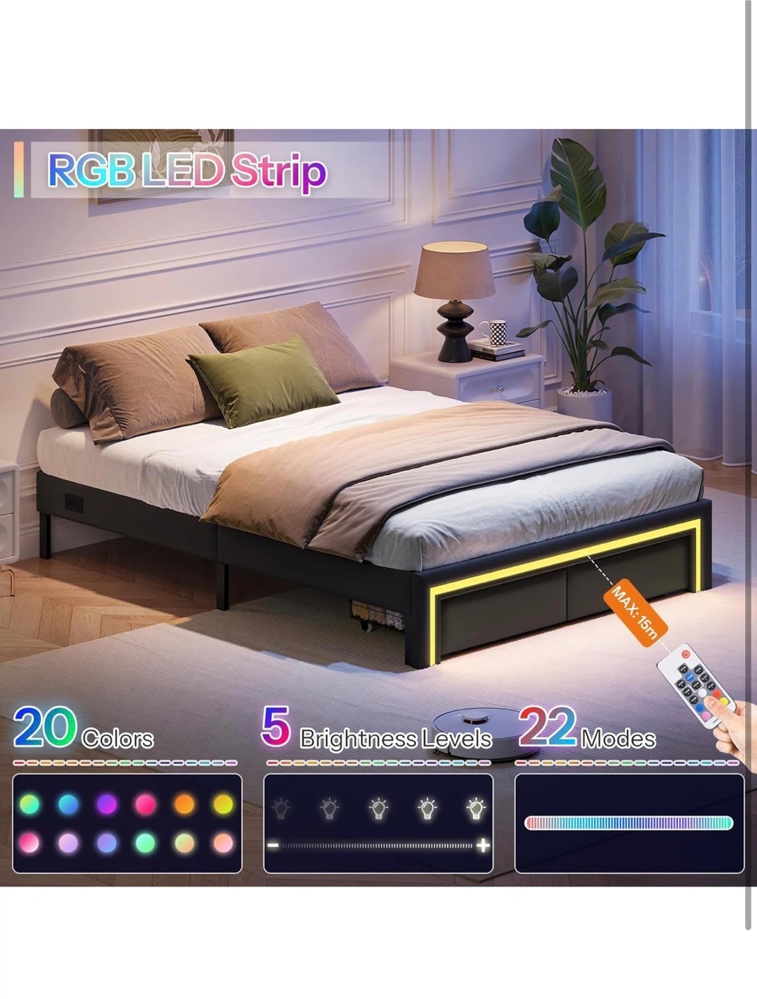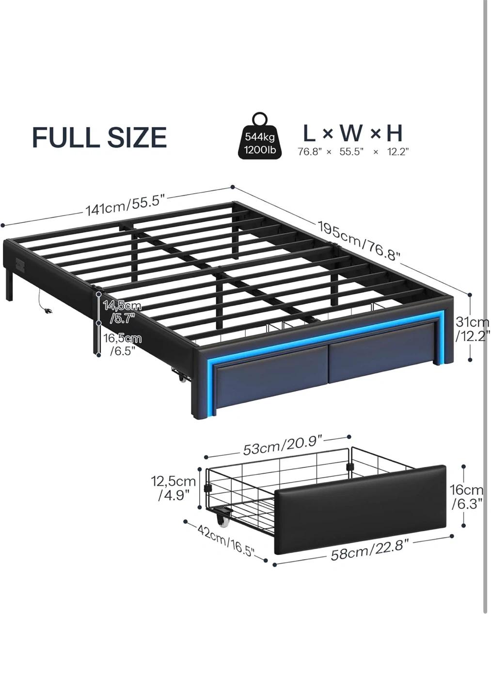 Full Size LED Bed Frame with Storage & Charging β Brand New
