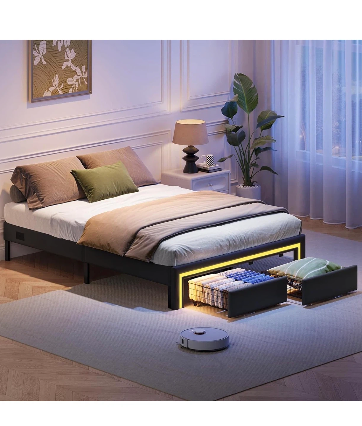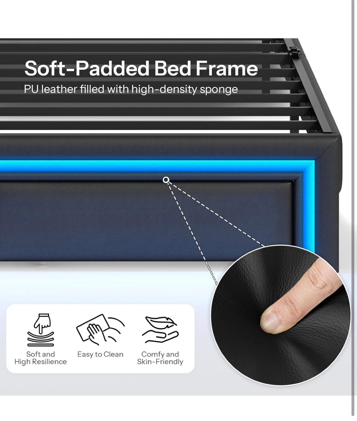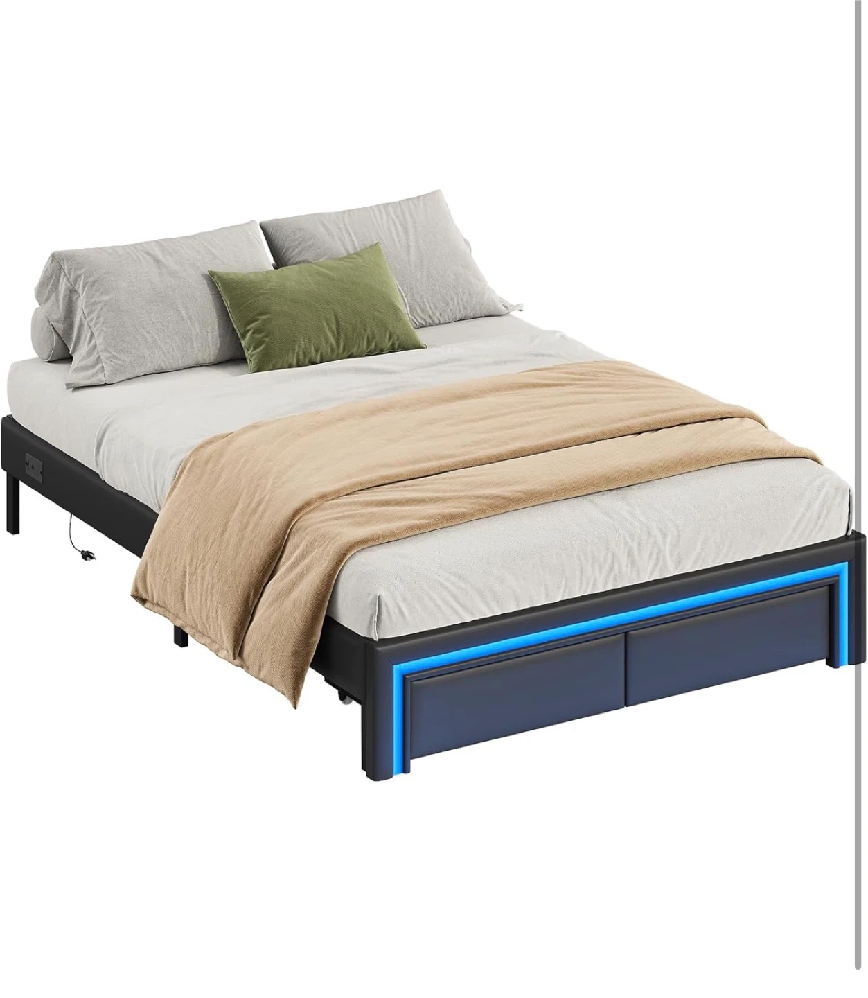 Full Size LED Bed Frame with Storage & Charging β Brand New