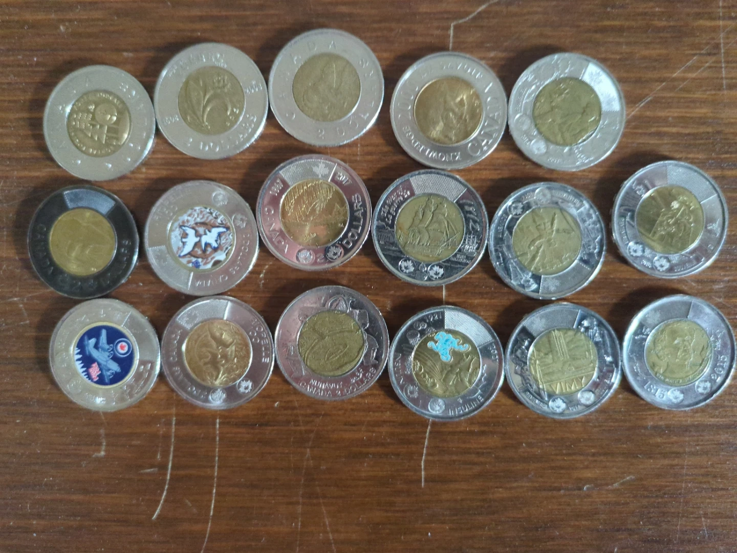 Selling a collection of Canadian two-dollar coins, also known as toonies! These coins showcase different designs and commemorative editions. A great addition for collectors or anyone interested in Canadian currency.