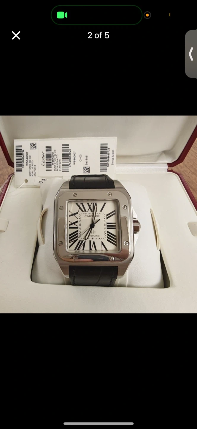 Selling a Cartier Santos 100 automatic watch. It comes with its original box and papers. A timeless piece!