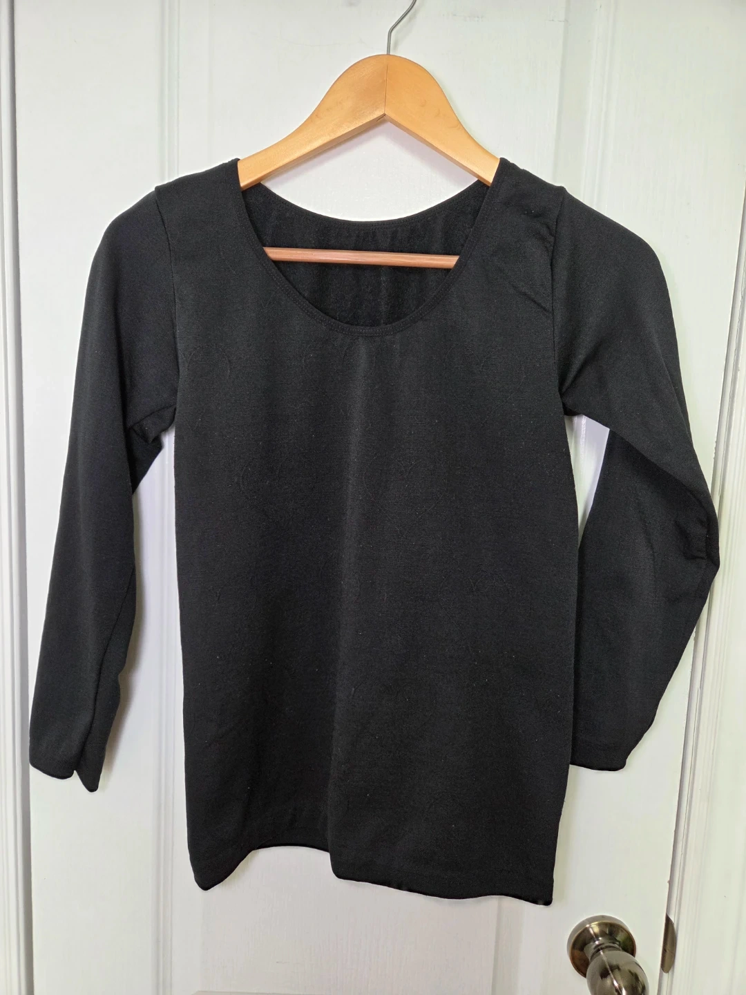 Selling two base layer tops. The black one has a scoop neck and a heart details on the front. The grey one has a mock neck and a flower design. The inside of both is lined with a soft fleece material. Perfect for layering during these cold months.