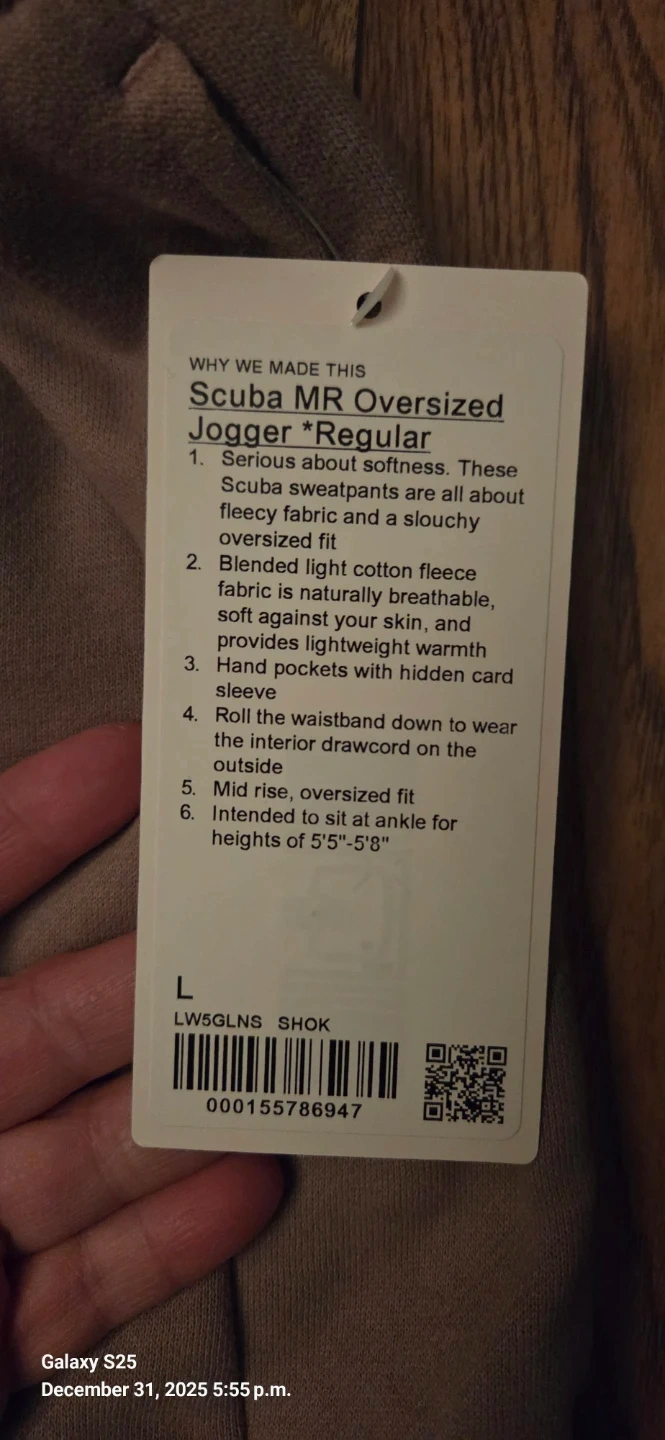 Selling a pair of Lululemon Scuba Mid-Rise Oversized Joggers in size L! These are the regular length and brand new. Colour is sheer oak.