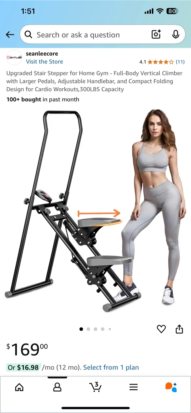 (Look at all the pictures. You can check them by clicking on the pictures. The detailed size is in the back.) Perfect for home workout. Compact design. Upgraded Stair Stepper for Home Gym. Full-Body Vertical Climber with Larger Pedals, Adjustable Handlebar, and Compact Folding. Easy to use. Product condition is so good. (Cash only) (You must come pick up your items. If you come to the apartment, I will take the goods to the lobby)