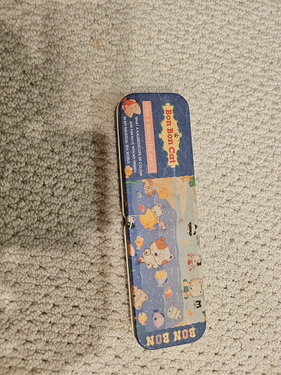 Tin pencil case. Missing the tin insert for 2nd level. But it still works and closes really well.