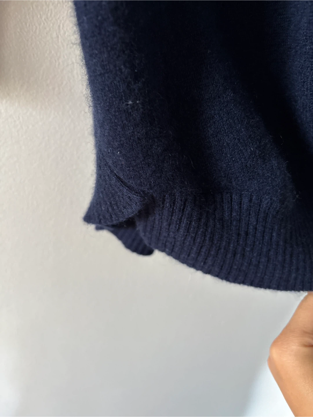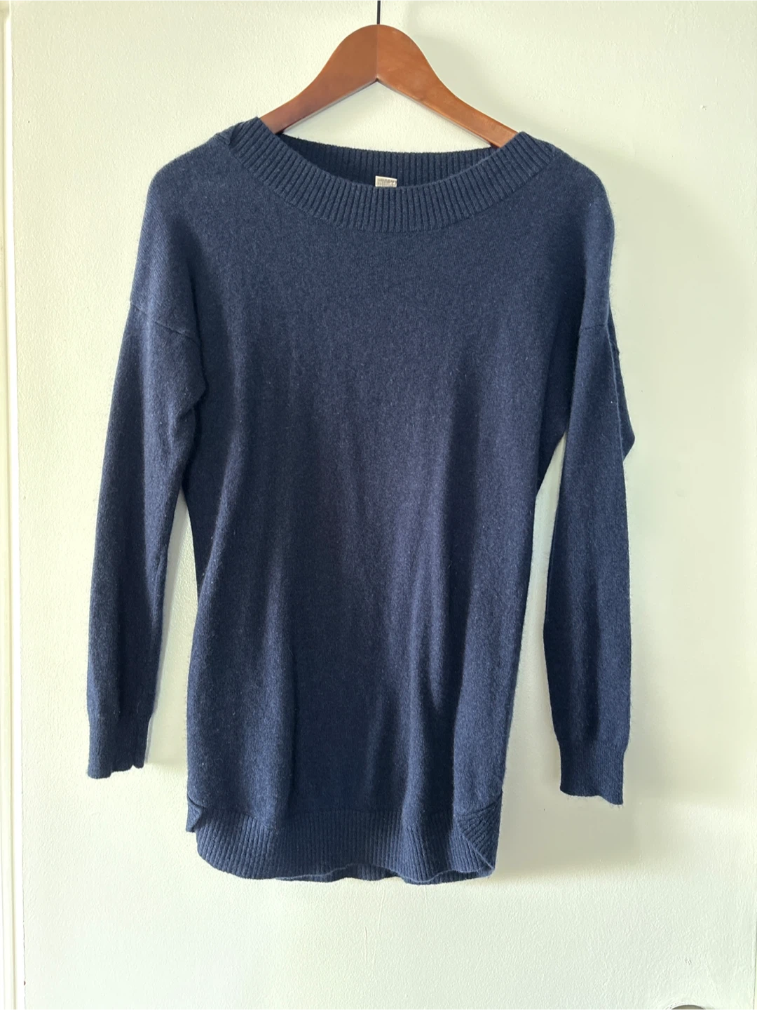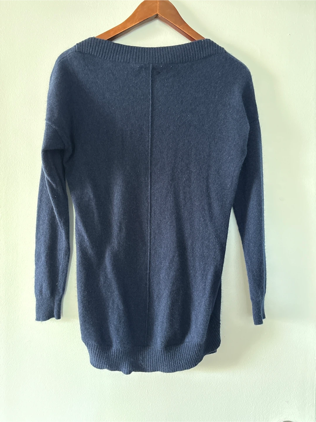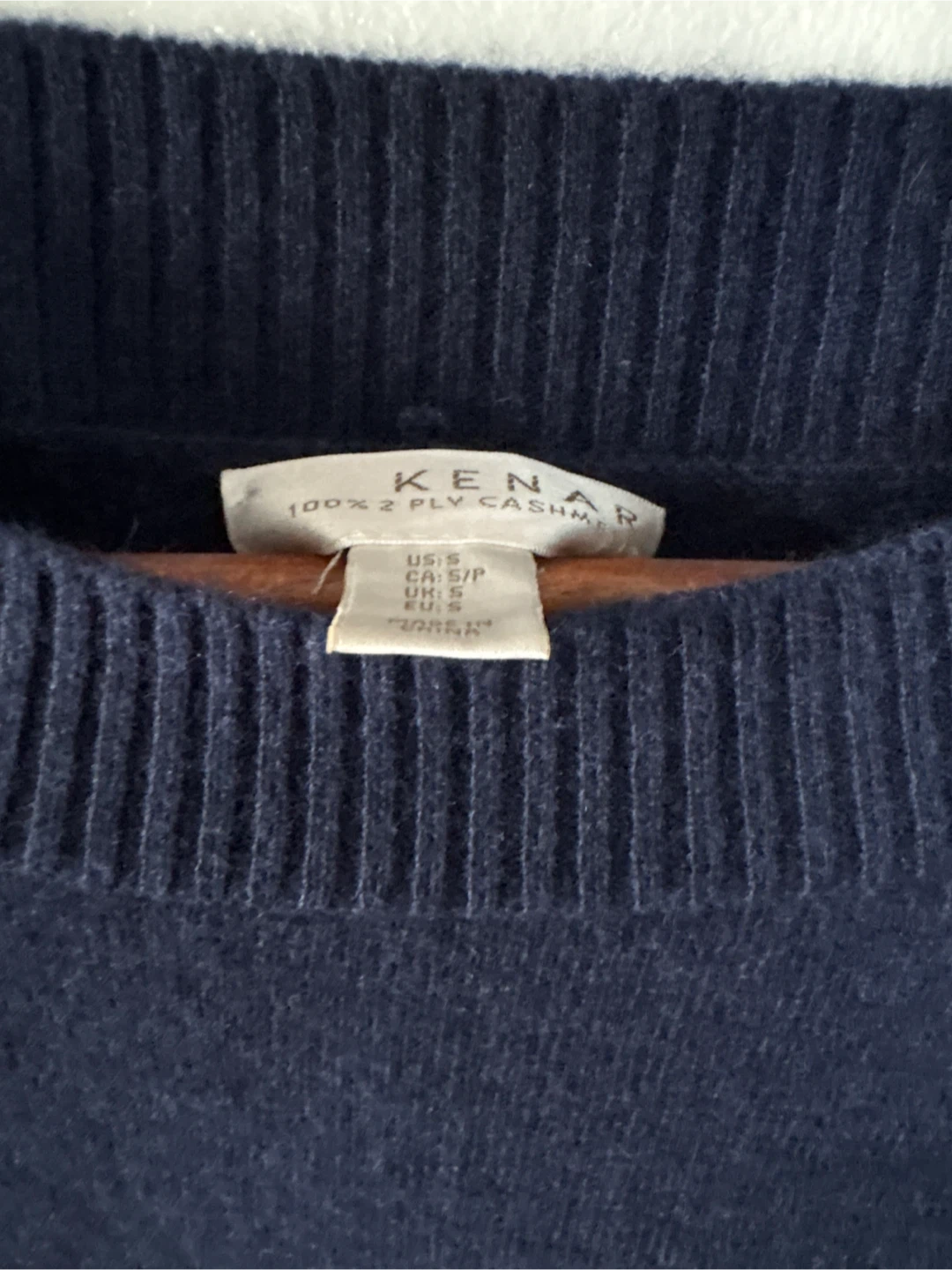 Cozy KENAR sweater in great condition! It's made of 100% 2 ply cashmere and is a size small. The colour is a lovely dark blue, perfect for layering during cooler weather