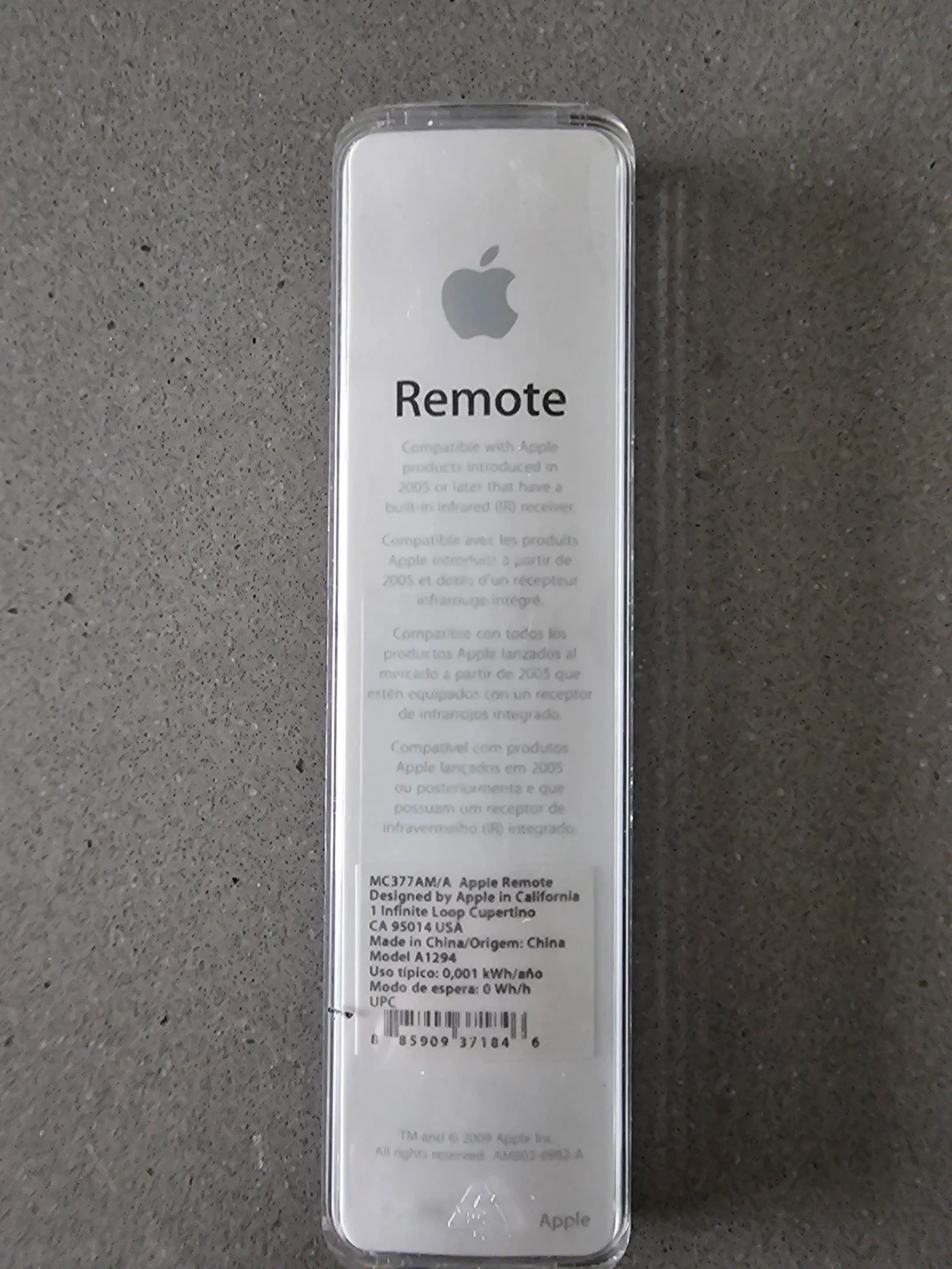 Selling an Apple Remote, model A1294. It's compatible with Apple products introduced in 2005 or later that have a built-in infrared (IR) receiver. The remote was never used and still in original packaging.