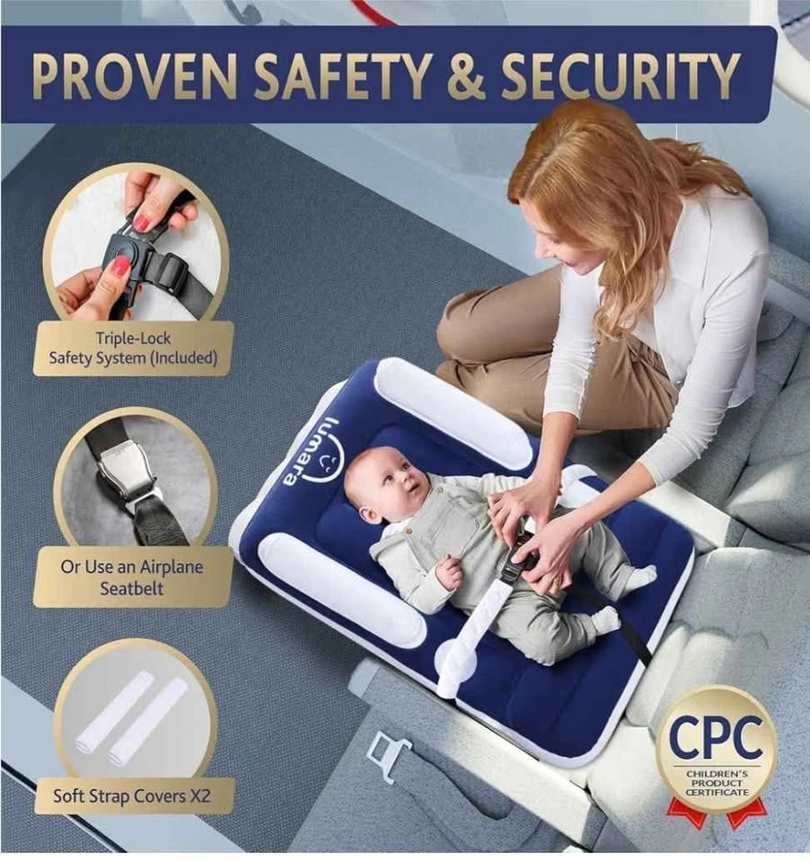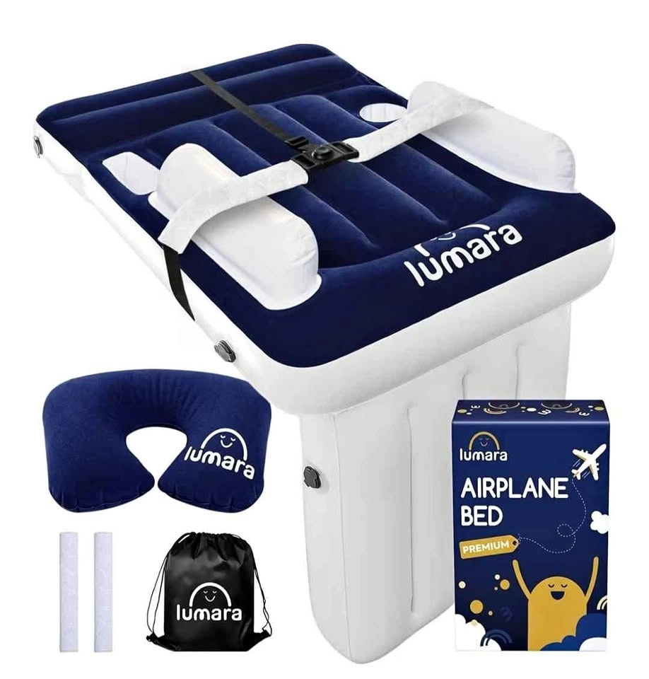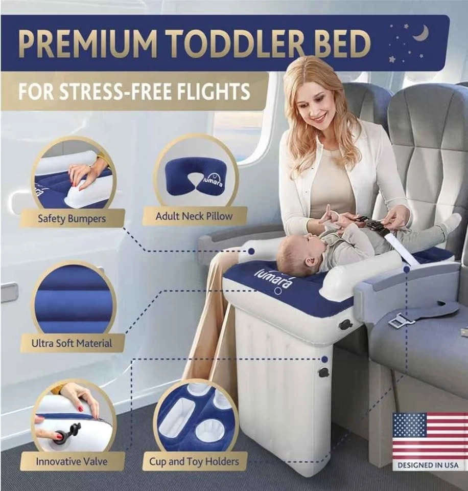 LUMARA Toddler Airplane Bed - Inflatable Airplane Bed for Toddlers, Plane Baby Seat Extender for Kids - Blow Up Air Mattress for Child Flight Sleep with Safety Belt, Innovative Valves, No Pump Needed