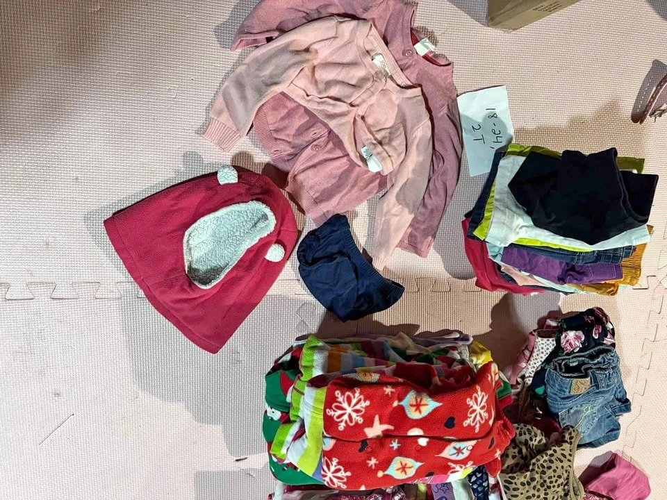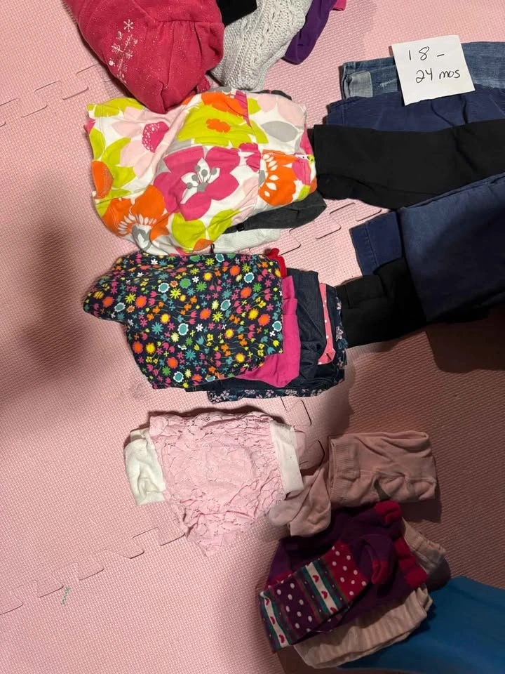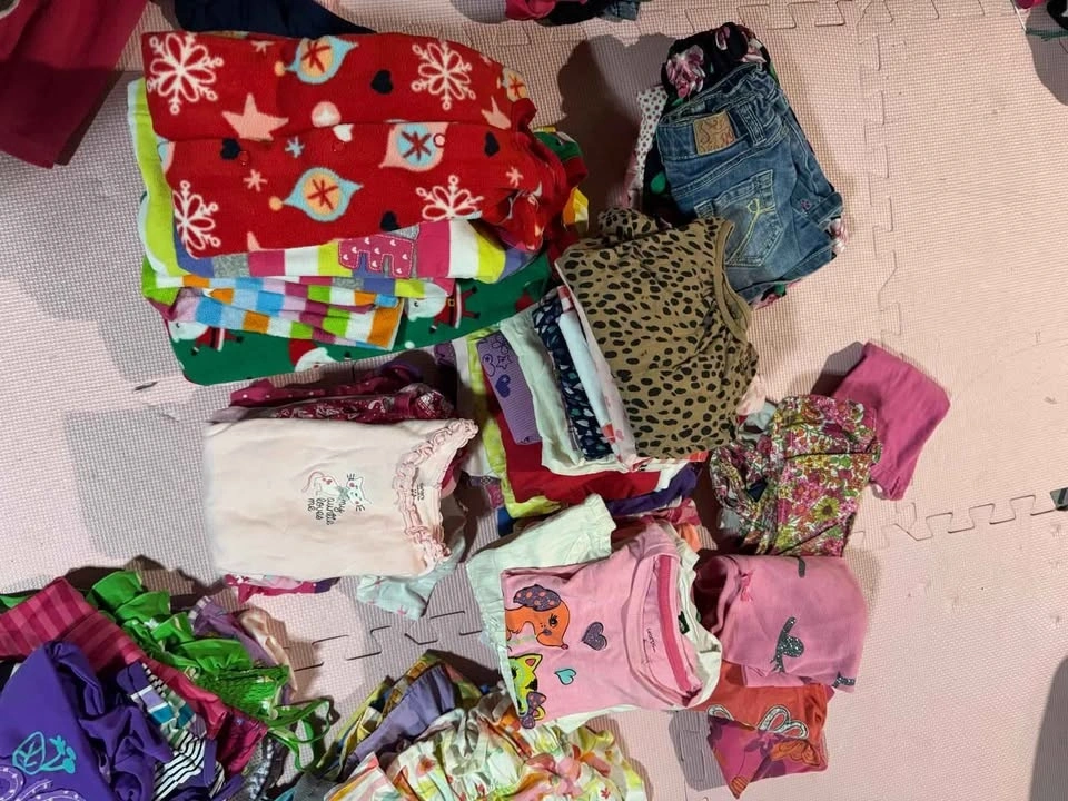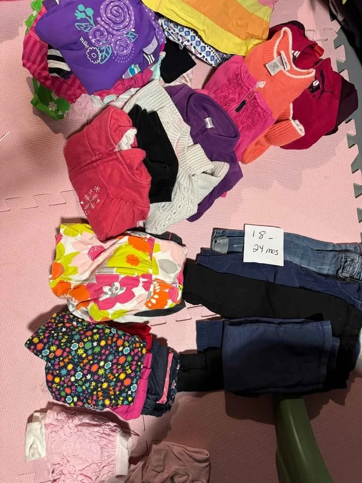 Includes: Robe, dresses, onesies, PJs, sweaters, Tshirts, Zip up hoodies, pants/leggings, jeans, skirts, shorts and bathing suits.