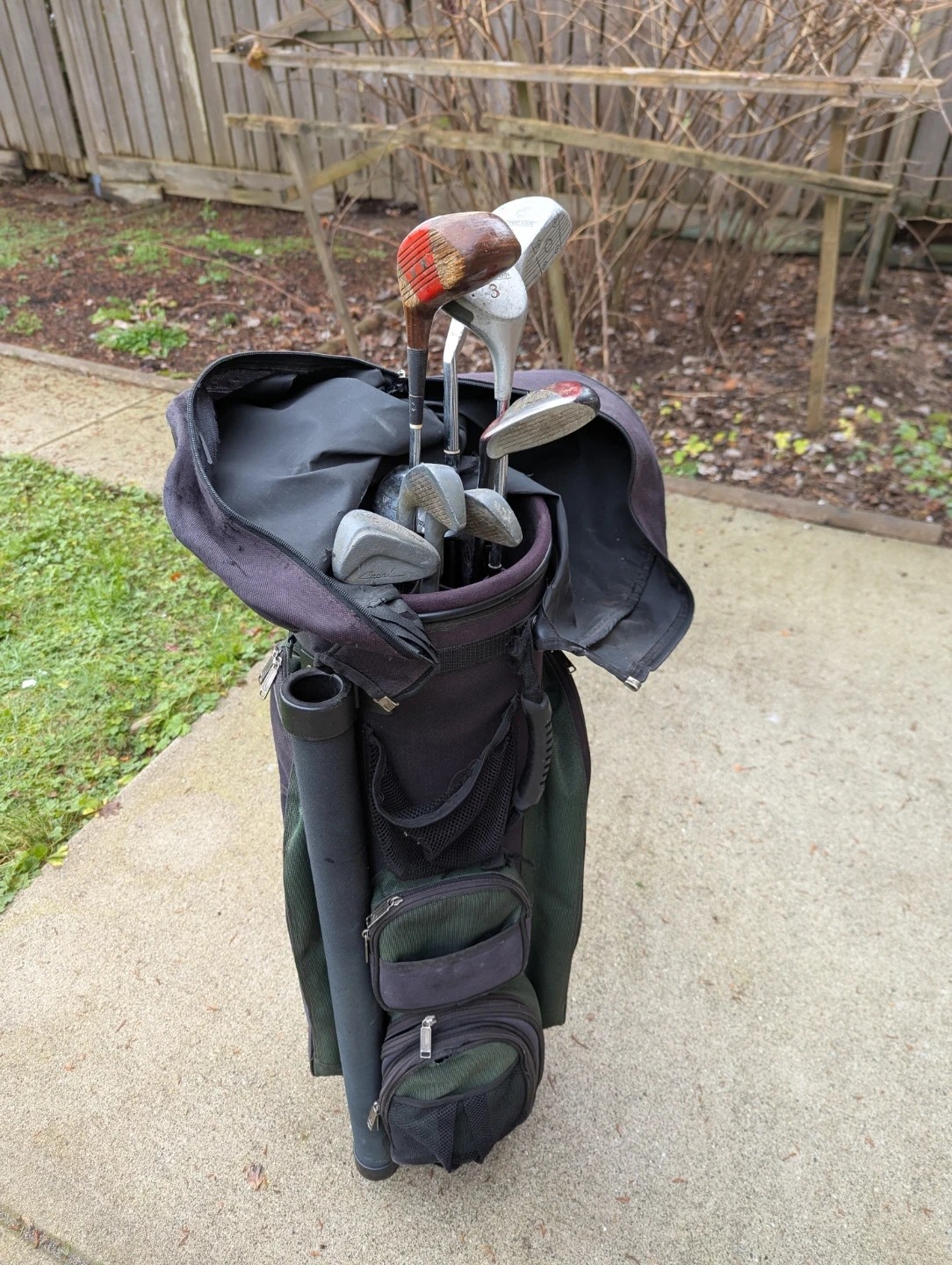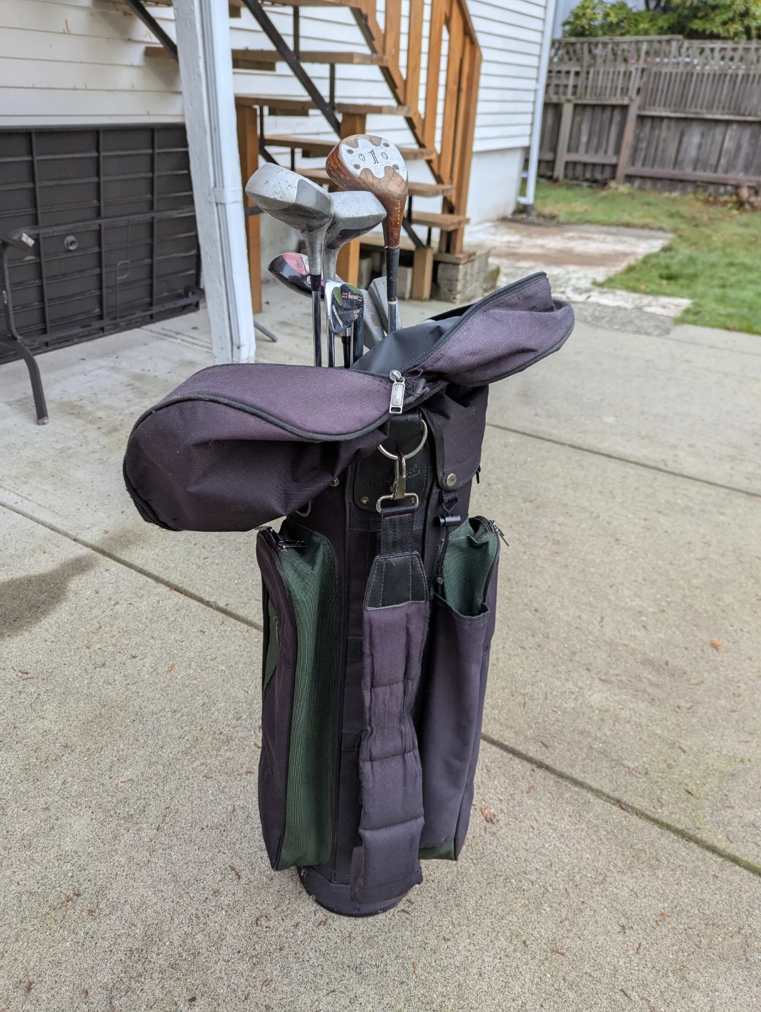 Selling a set of golf clubs, complete with a golf bag! The set includes various clubs, ready for the green. Perfect for beginners or casual golfers looking for a complete set.
