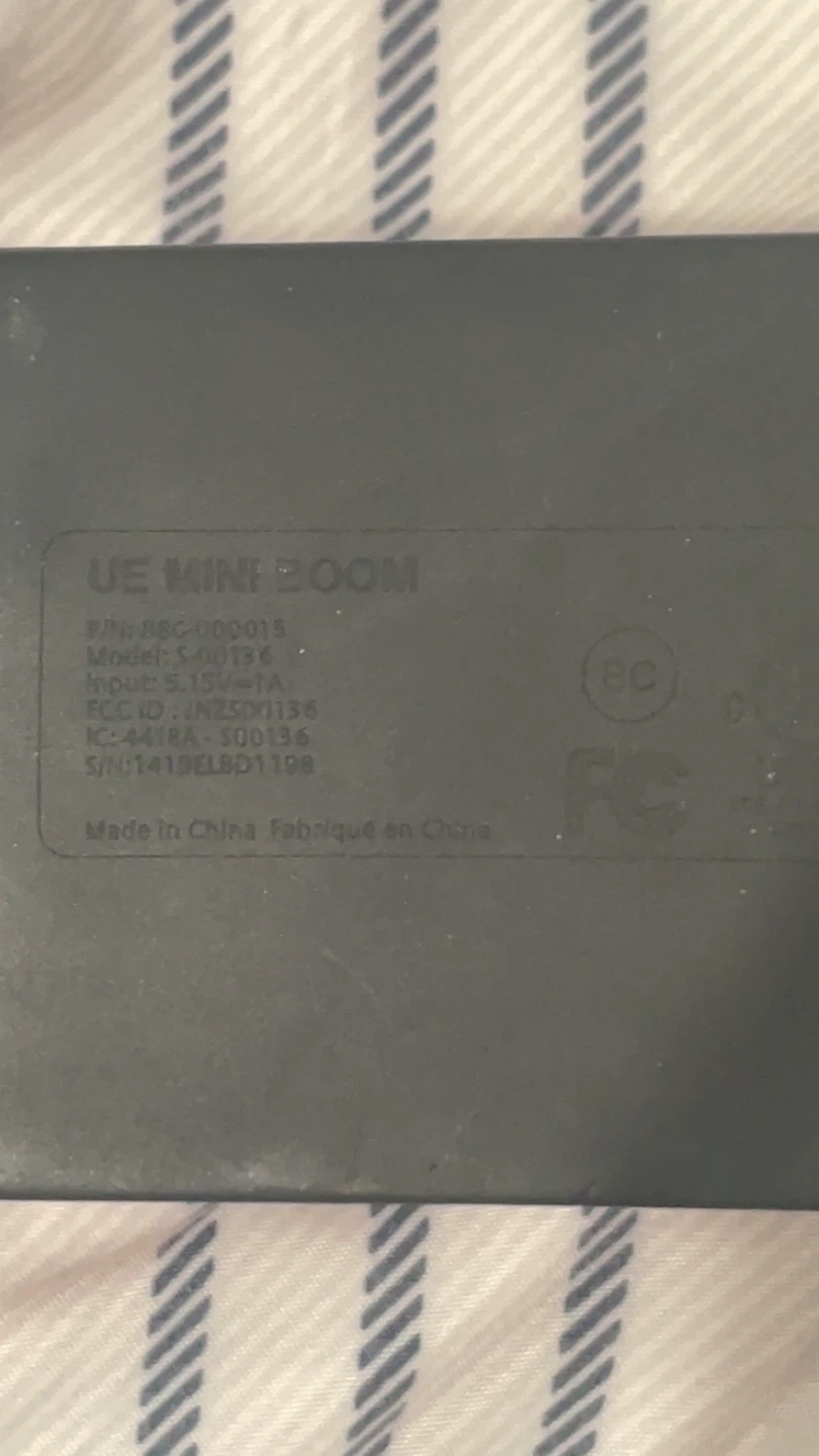 Selling a UE Mini Boom speaker. It's in good condition and ready for a new owner. It's a portable wireless speaker, perfect for on the go!