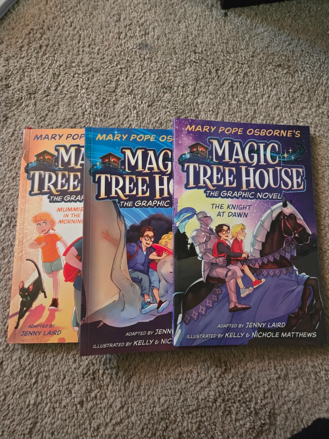 Selling a collection of Magic Tree House graphic novels! These are adapted by Jenny Laird and illustrated by Kelly & Nichole Matthews. Great for young readers who love adventure and history!
