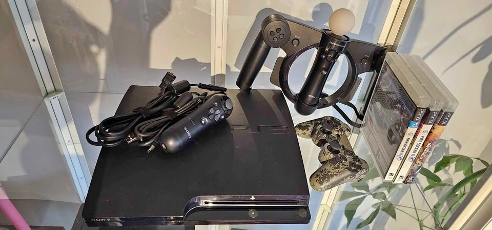 Includes camo controller, full PS Move setup with steering/motorcycle accessory, and a few games.