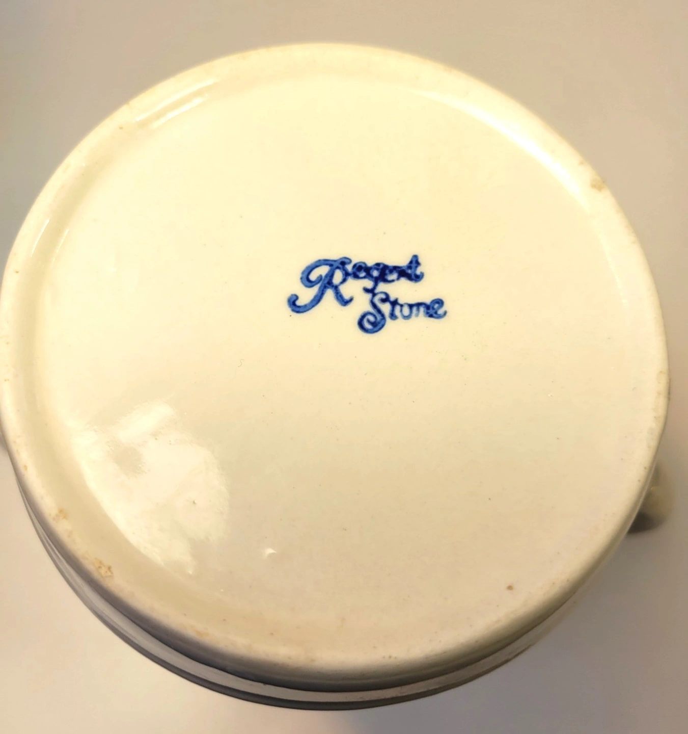 Regent Stone was celebrated for its durability and substantial "stone" weight, making this both a functional serving piece and a charming display item for a farmhouse or cottage-style kitchen. Its timeless blue and white aesthetic remains a favorite for collectors of traditional English transferware.