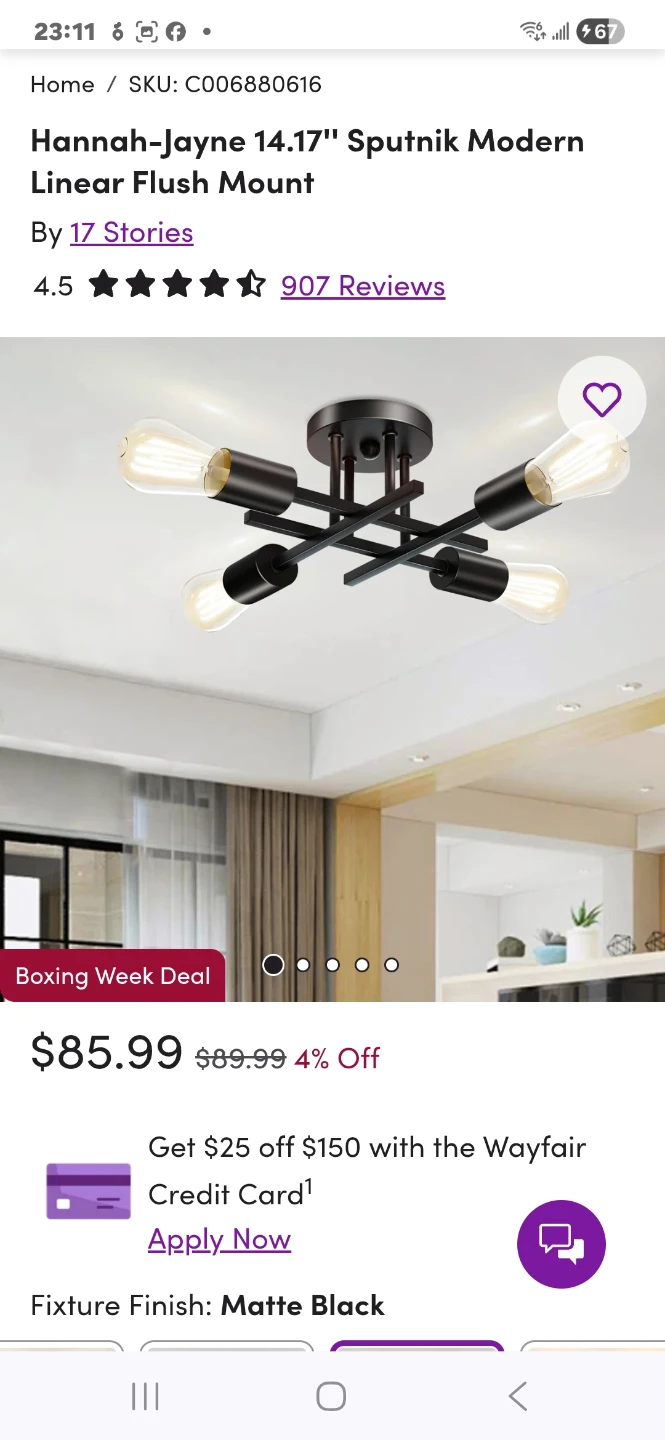Selling a Hannah-Jayne 14.17" Sputnik Modern Linear Flush Mount. The fixture finish is matte black. Originally listed for $85.99.