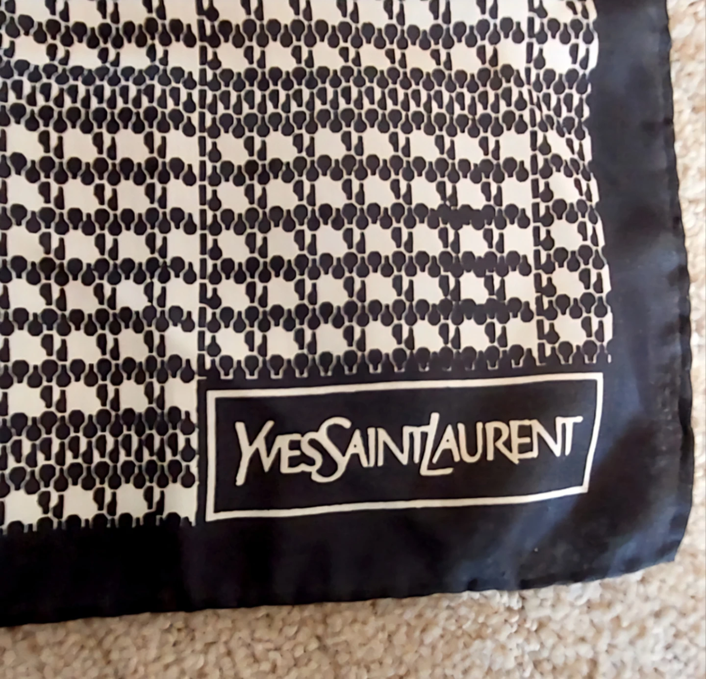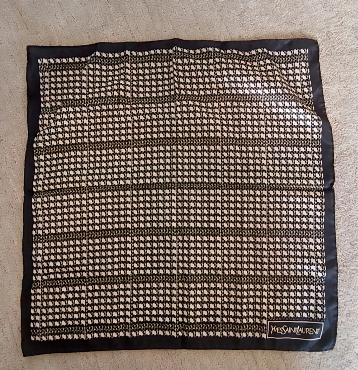 🎀Selling a beautiful Yves Saint Laurent scarf! It's made of pure silk and features a classic black and white pattern. The scarf is in great condition and would add a touch of elegance to any outfit