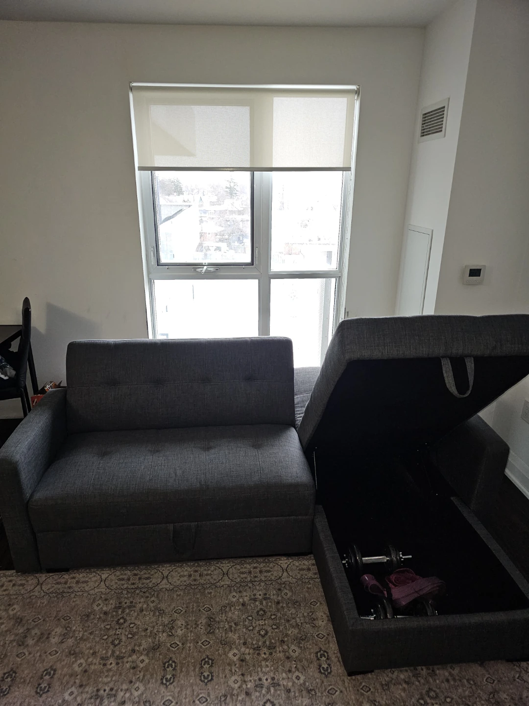This is a multi-functional sofa that is perfect for condos or apartments. It features a pull-out sleeper section to turn it into a bed for guests, and the chaise lifts up for hidden storage (great for blankets and pillows).