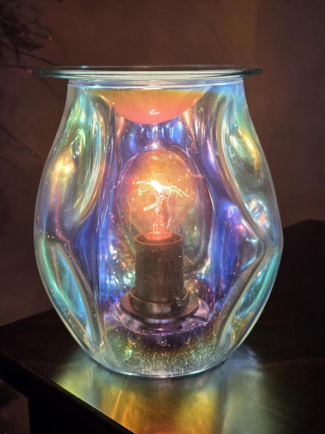 Selling my Scentsy Bubbled Iridescent Warmer, still in its original box! This beautiful warmer has a unique, iridescent finish that adds a touch of sparkle to any room.