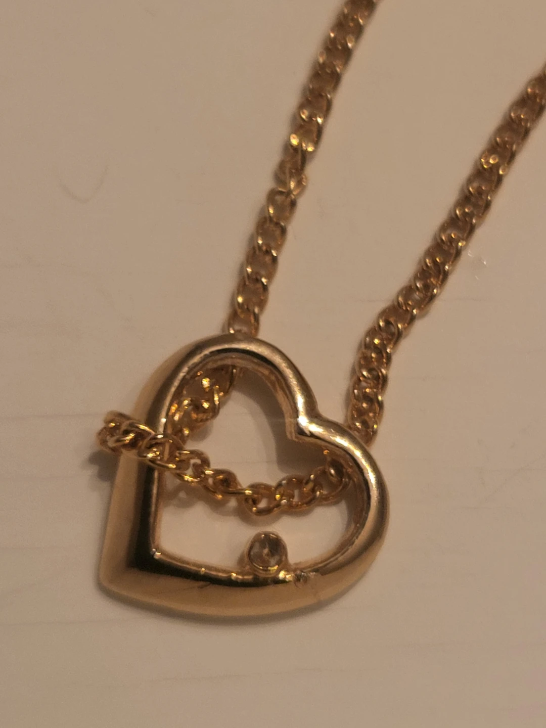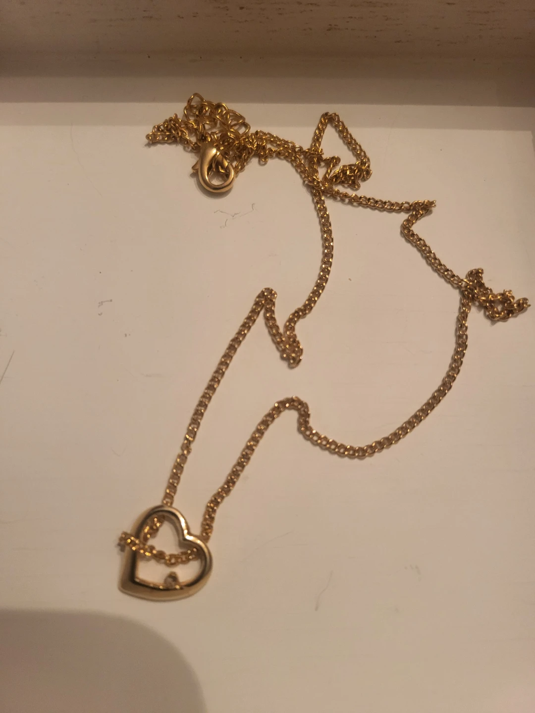 Selling a cute gold heart pendant necklace. It's in great condition and has a lobster clasp. Perfect for adding a touch of sparkle to any outfit!