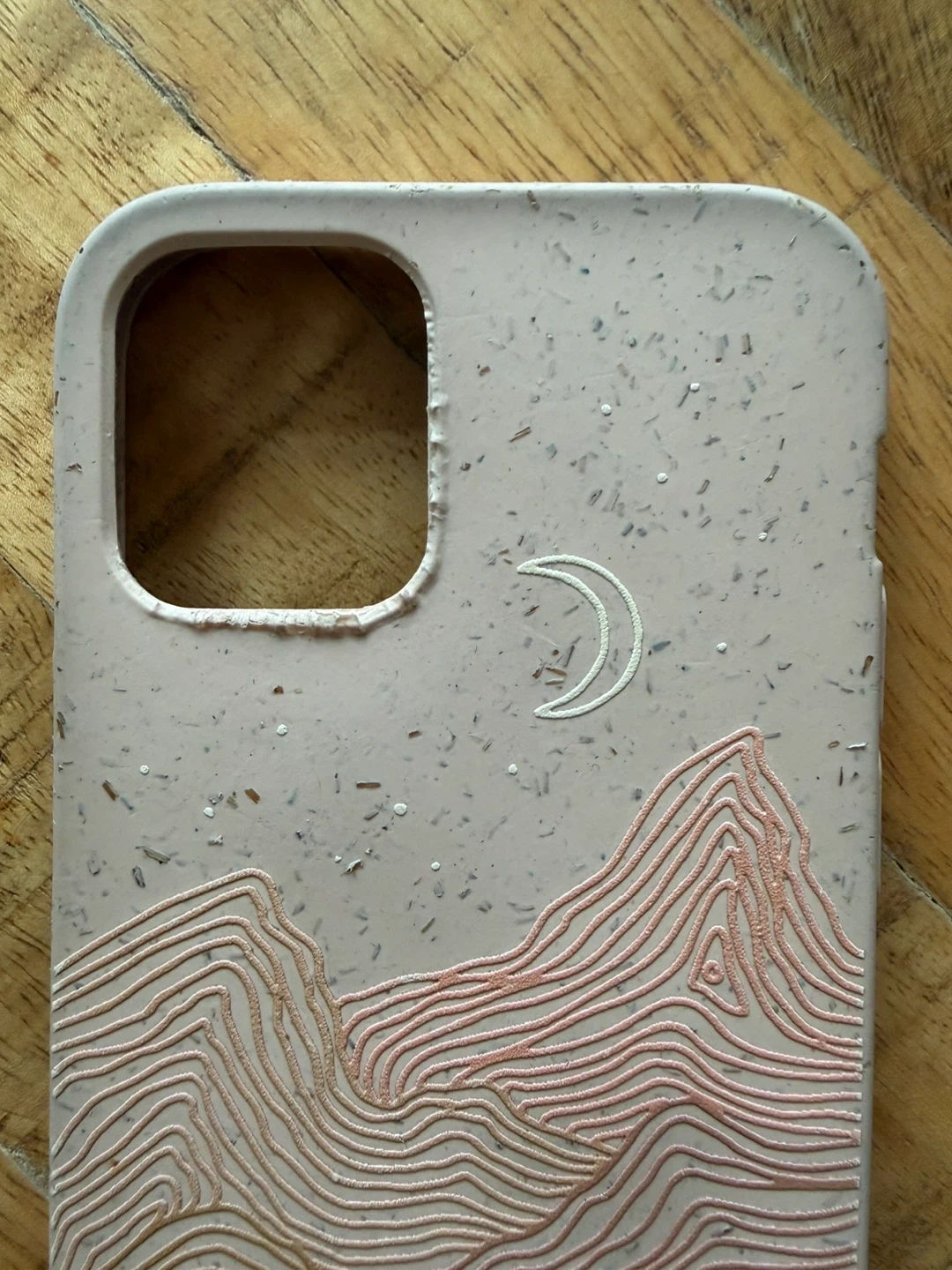 Cute Pela phone case featuring a mountains and moon night scene design. Lightly use. Some signs of wear as shown in photos, but still in excellent condition.