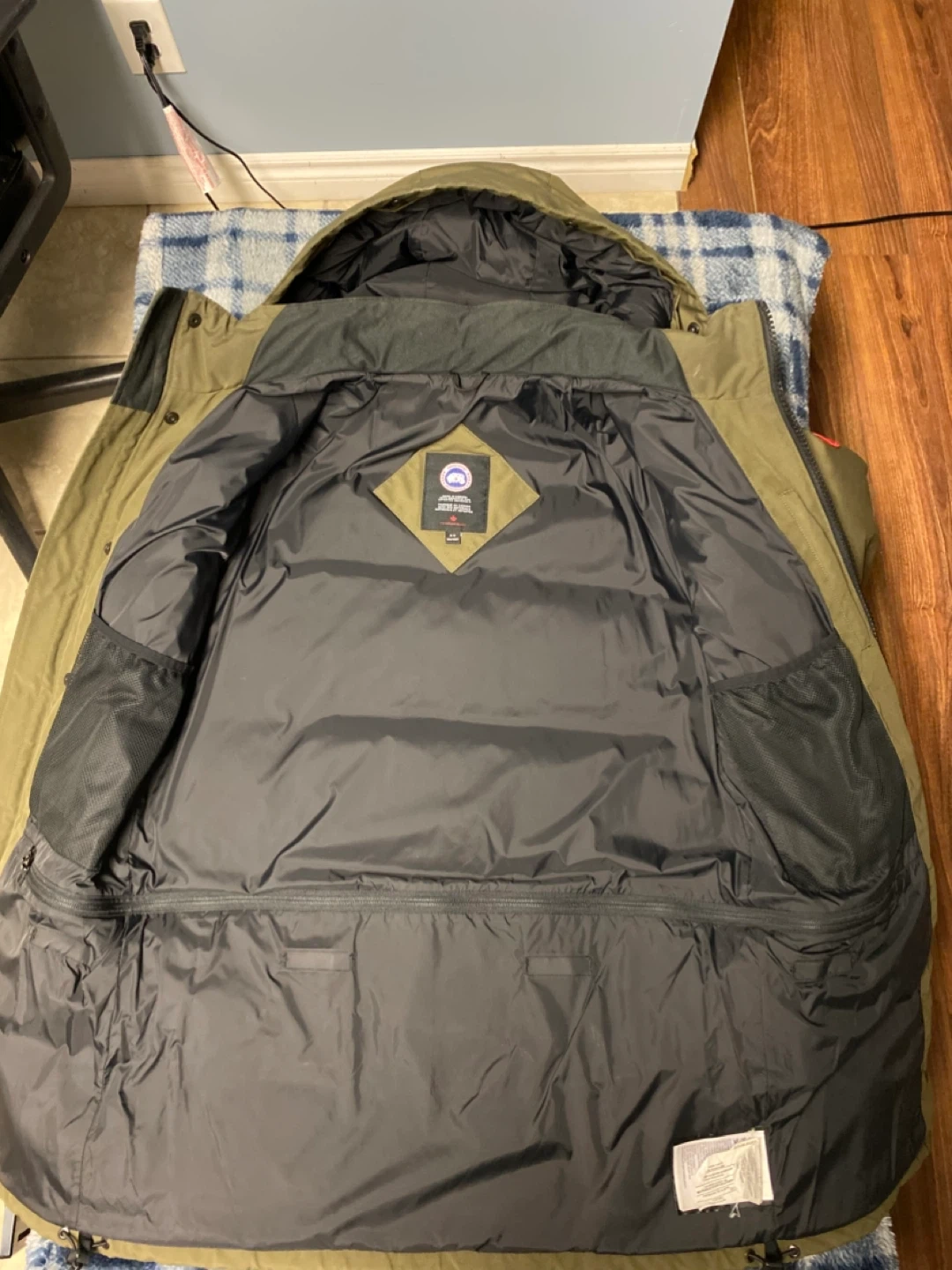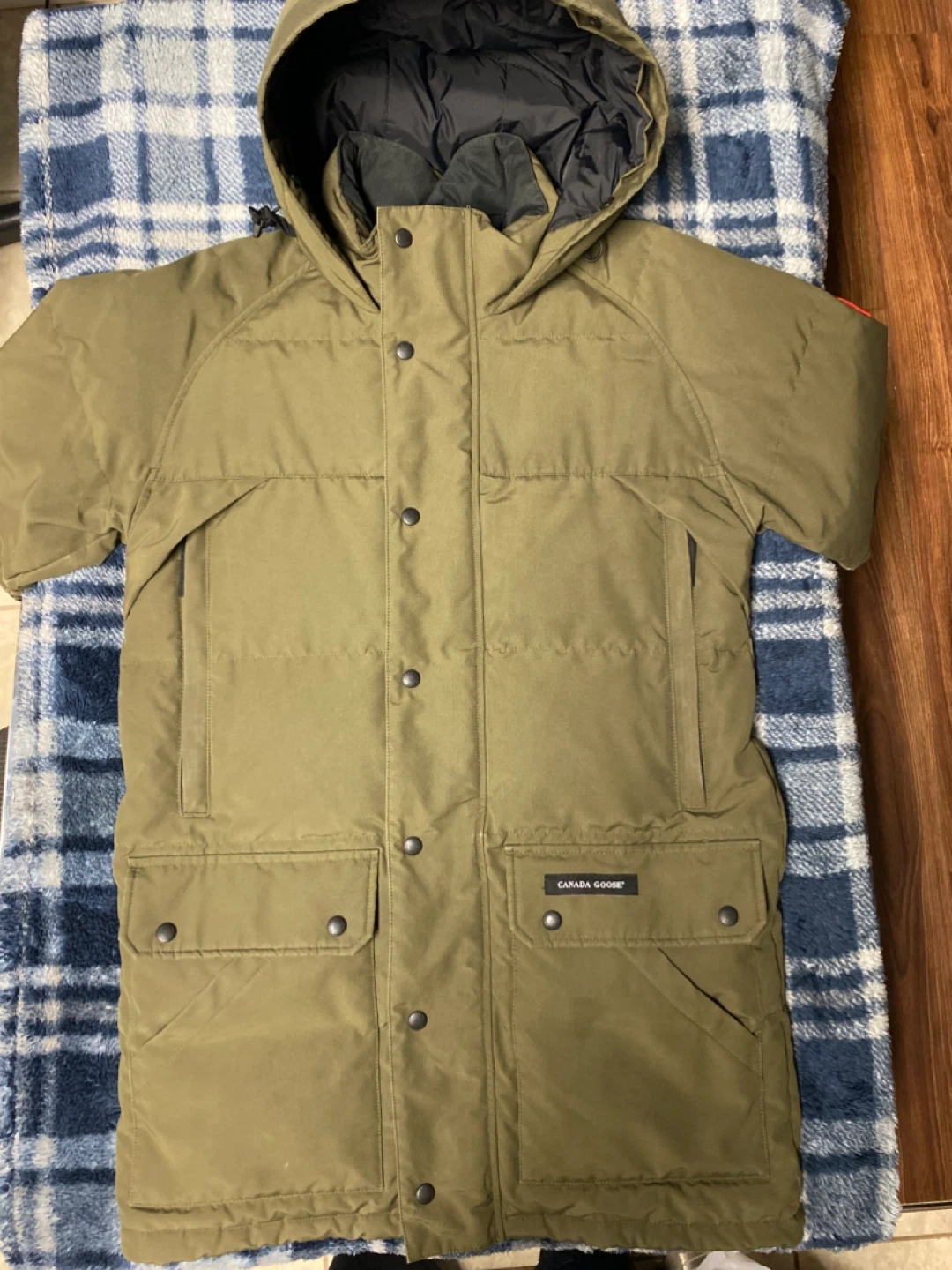 Selling a Canada Goose parka in Military Green It's in great condition and ready to keep you warm this winter. Features a hood and plenty of pockets for storage