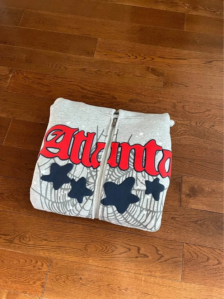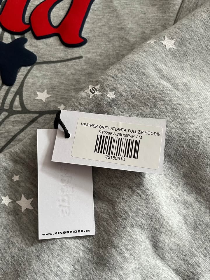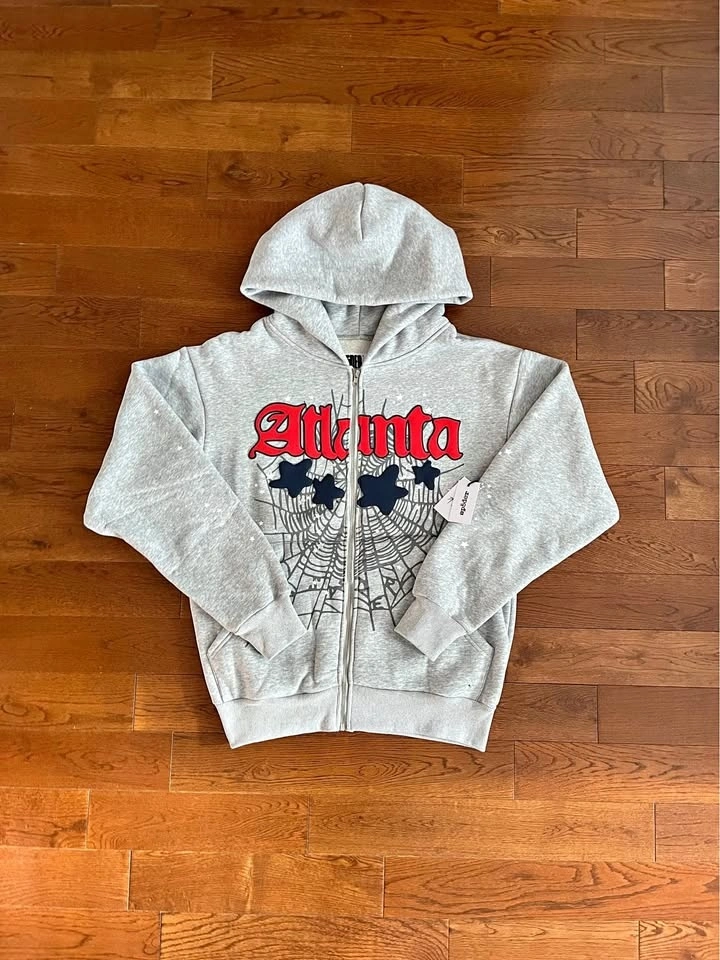 Sp5der Atlanta Full Zip Up Hoodie - Heather Grey (Brand New, Med