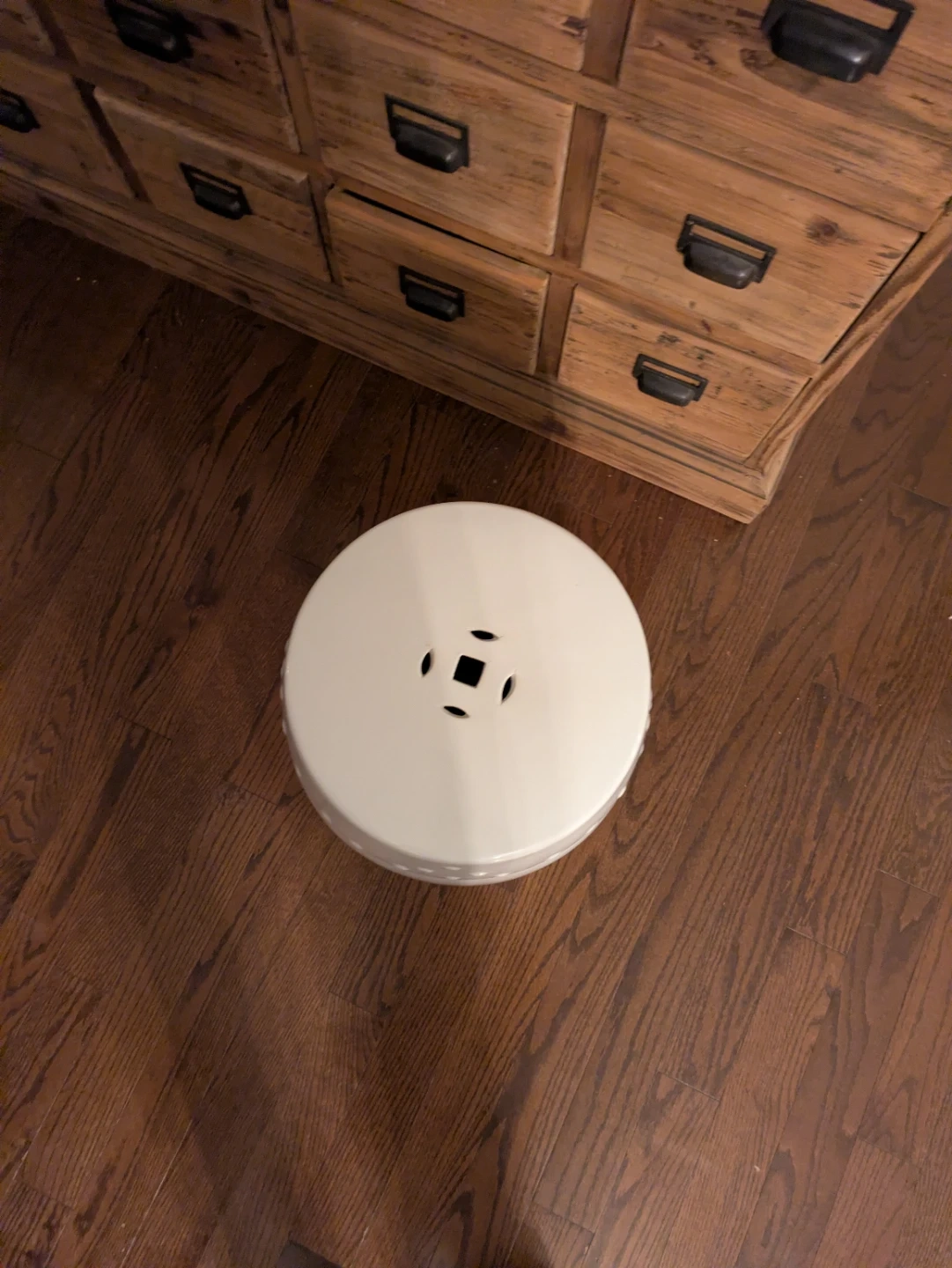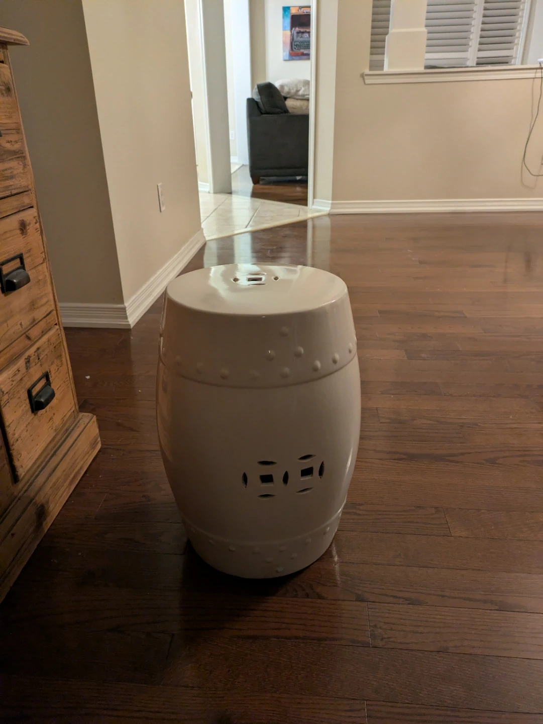 Selling a white ceramic side table/accent.! It's in great condition (no cracks or chips) and would look lovely indoors and probably work outdoors. It's a versatile piece that can be used as a side table or extra seating
