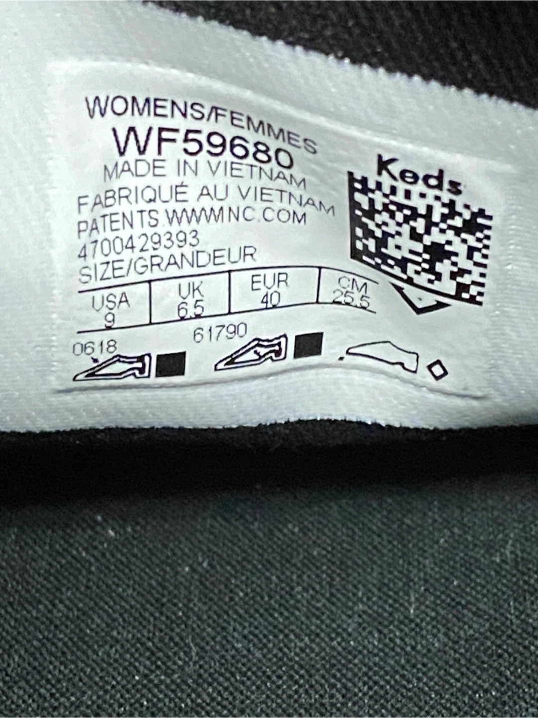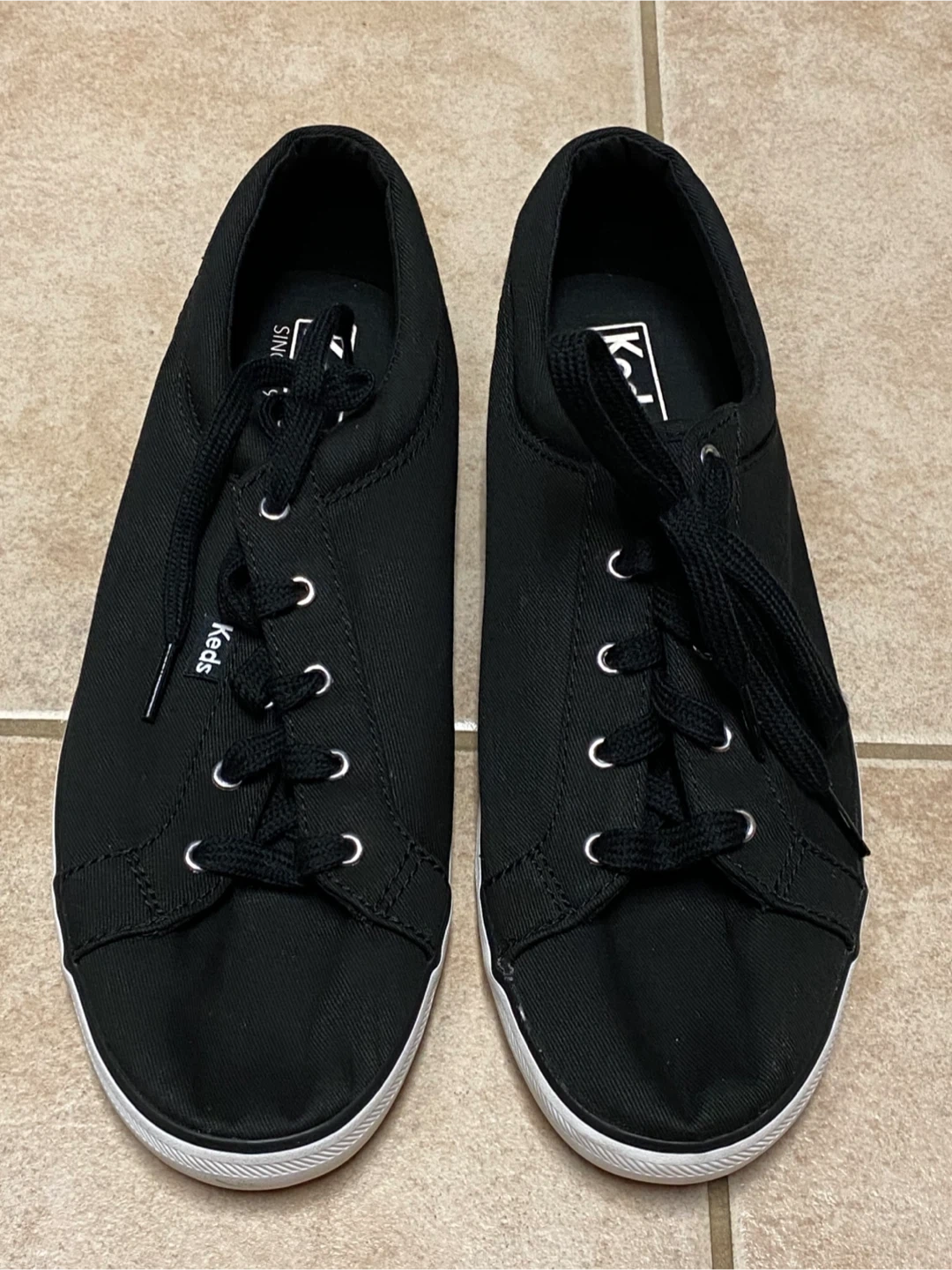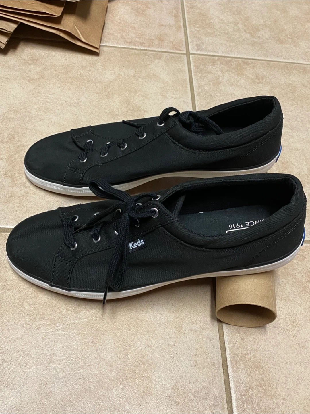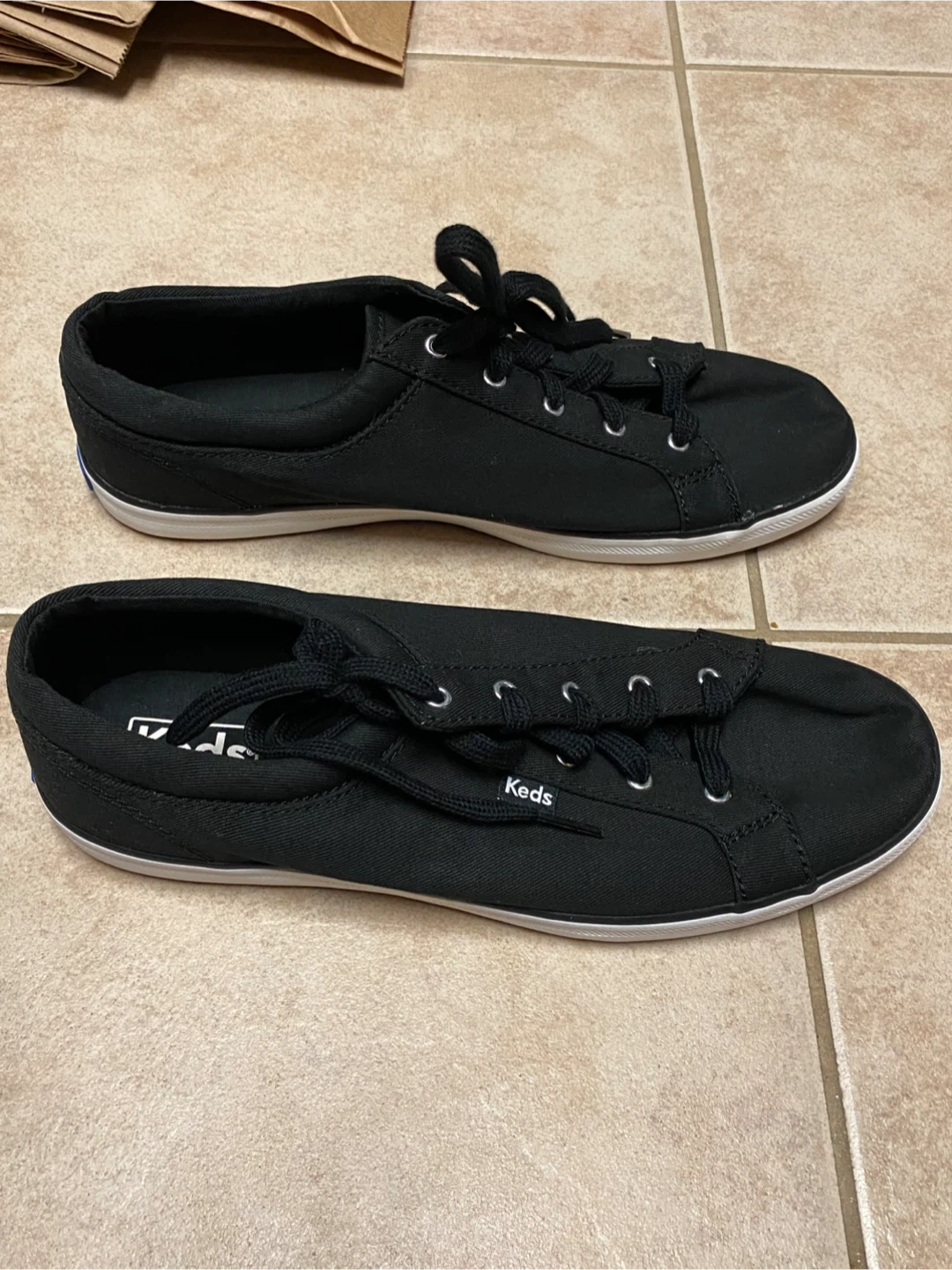 Selling a pair of Keds women's sneakers in black! They're a size 9 (USA), 6.5 (UK), or 40 (EUR). New, never worn but no box.