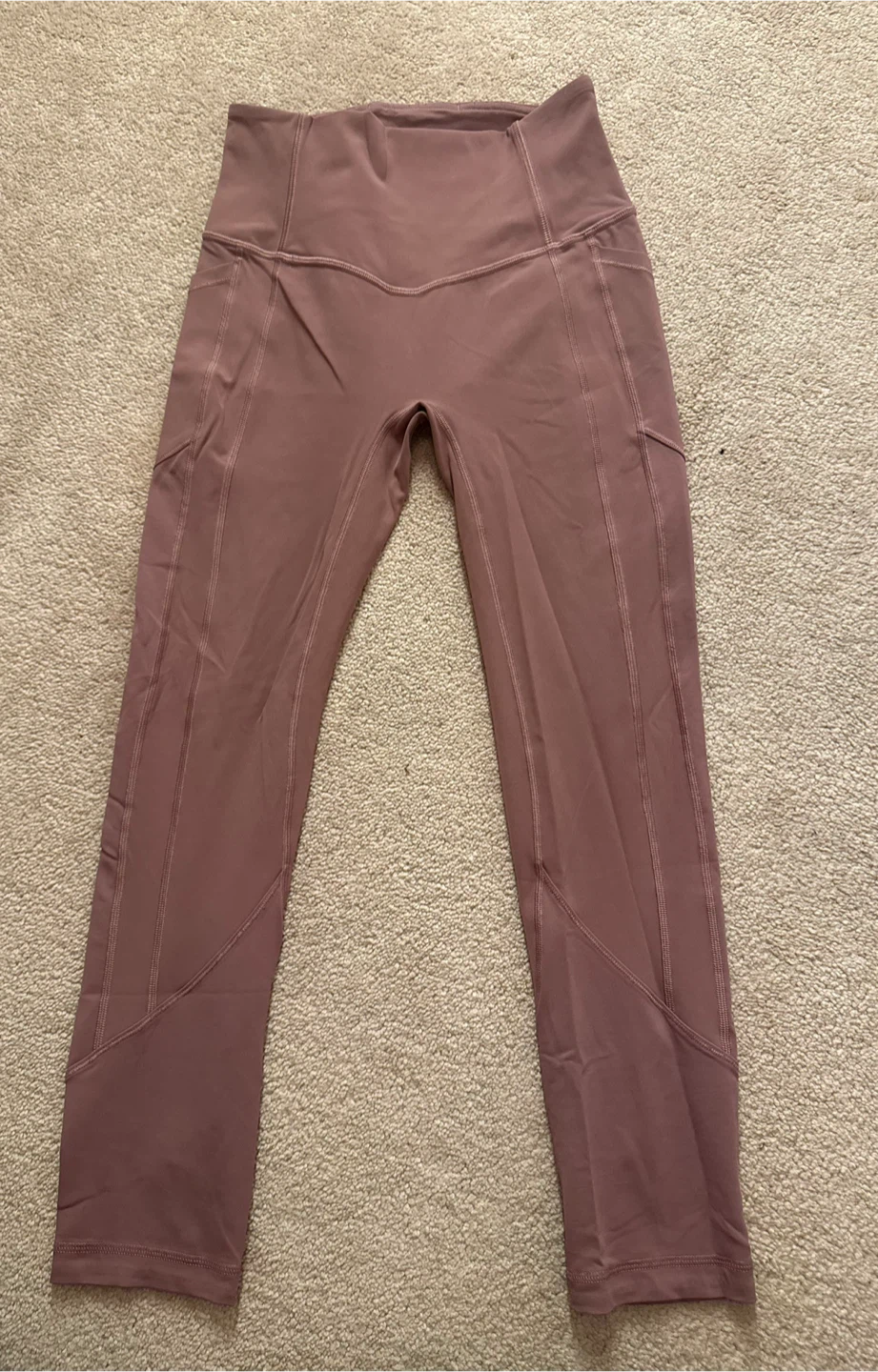 Selling a pair of Lululemon Align leggings in size 4. They're in great condition! They are perfect for running with nice pockets for phone and wallet on either side, as well as reflective strips on the ankle for running when it’s dark out!