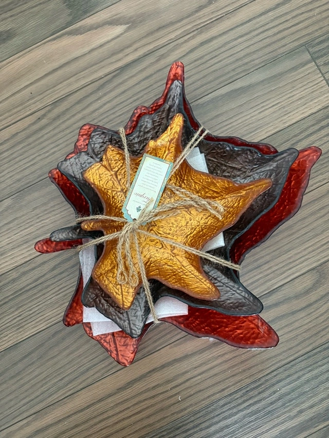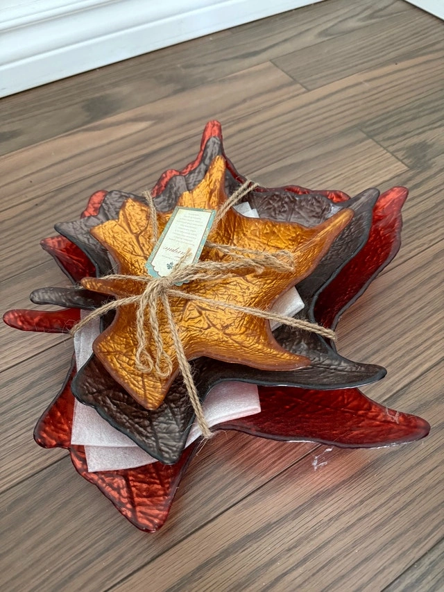 Set of Autumn Leaf-Shaped Glass Plates – Brand New!