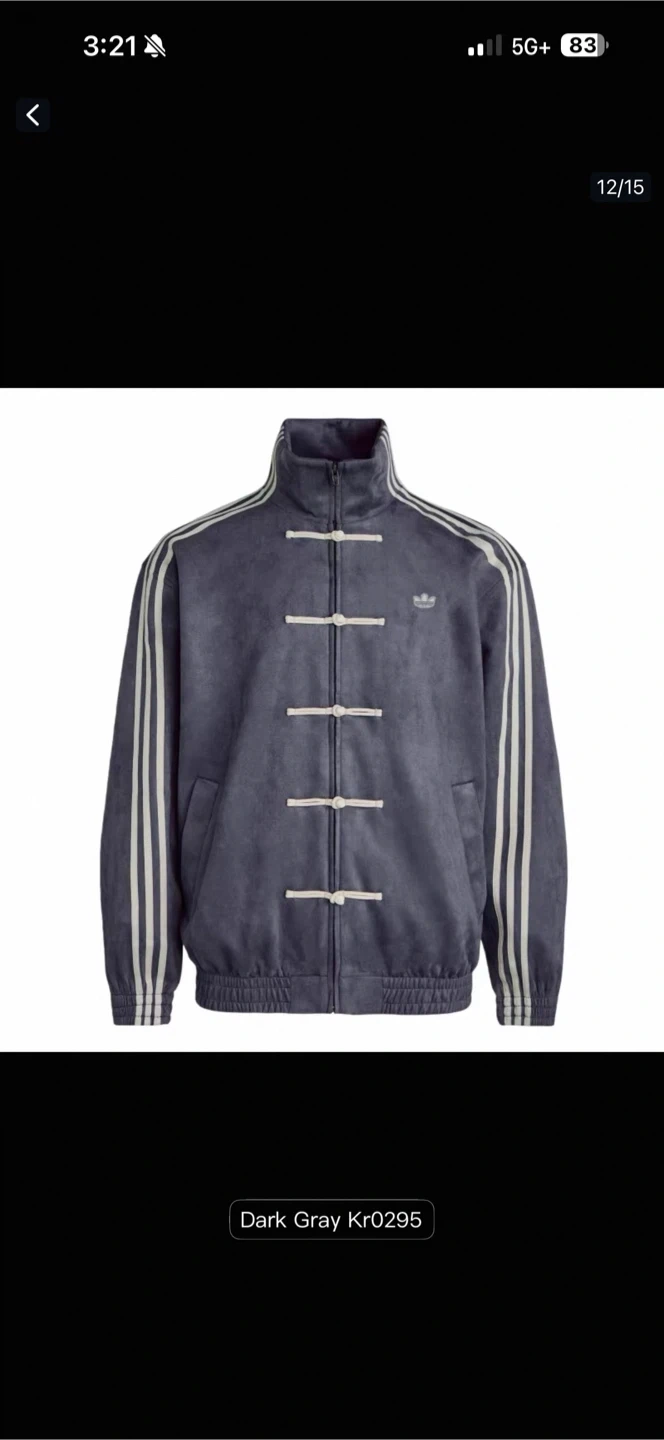 Here's an jacket with unique Chinese knot buttons! It features with three-stripe design on the sleeves. Available in a range of colours.