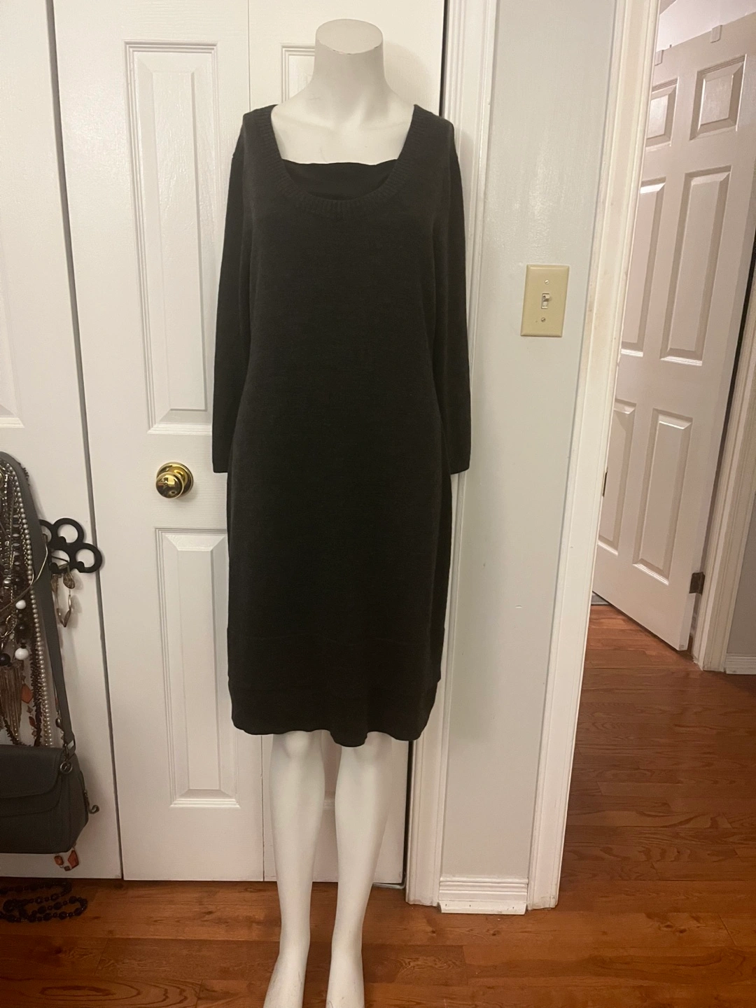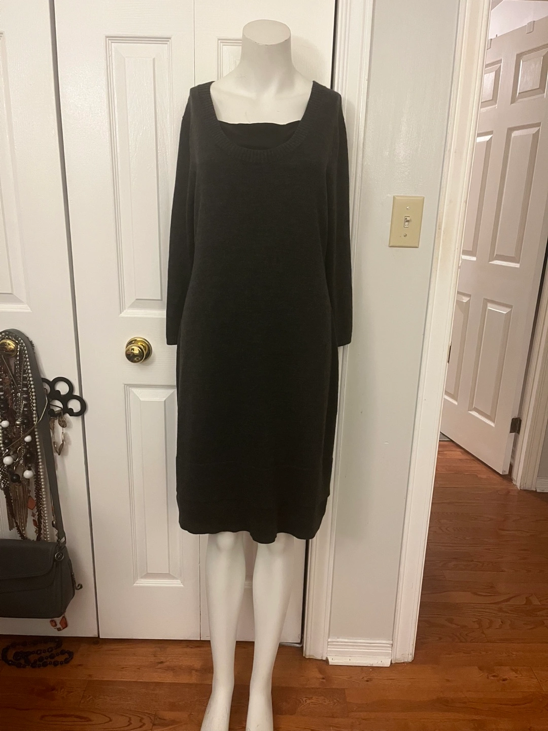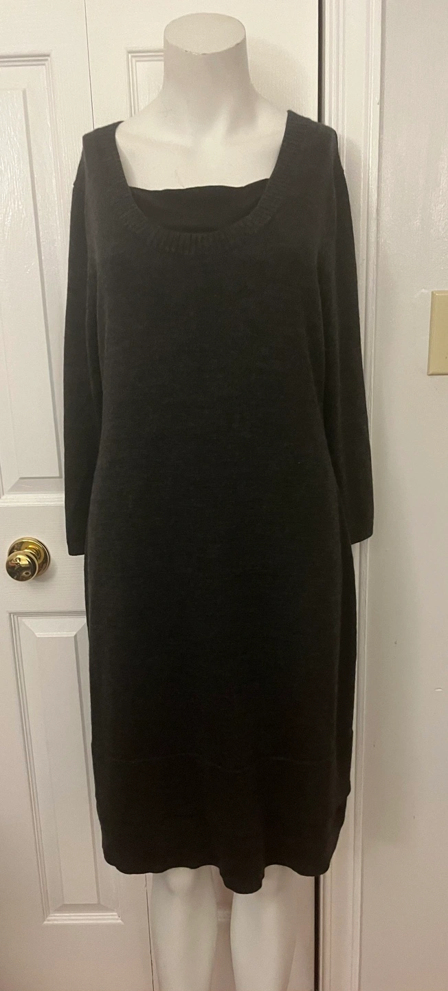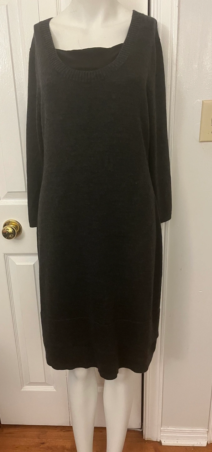 Cozy and chic black dress from Calvin Klein! It's a size small / medium and made with a blend of 55% wool and 45% acrylic. Perfect for those cooler days. Dry clean only!