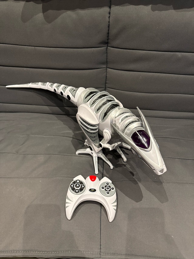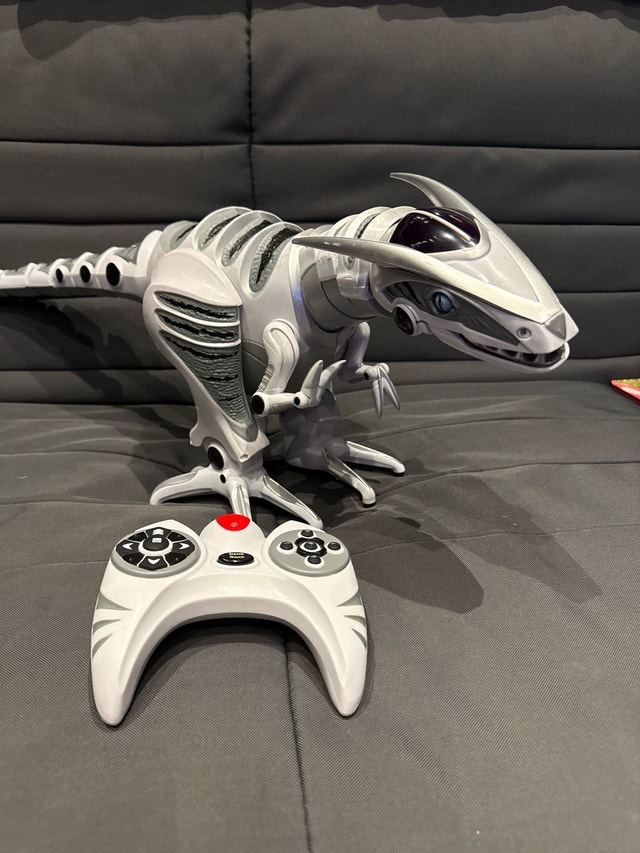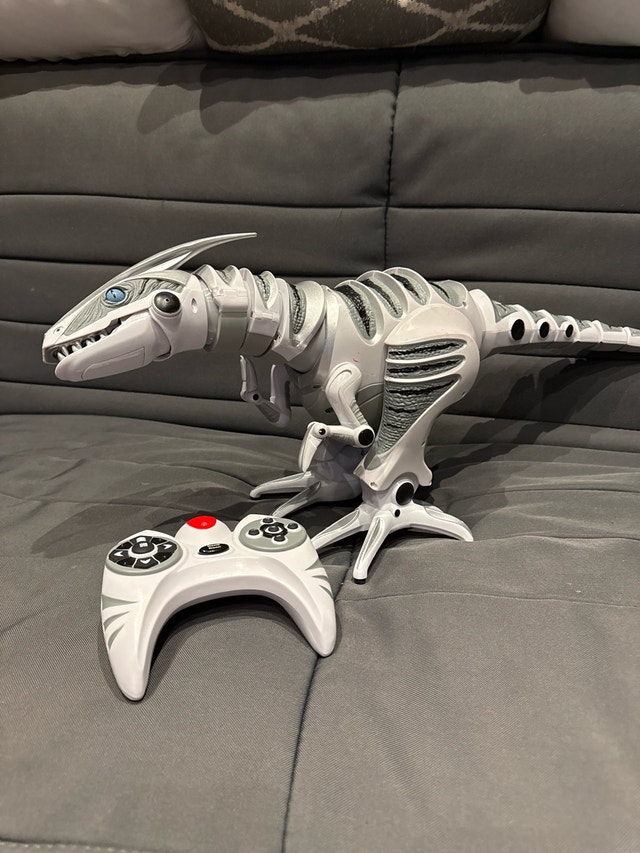 Roam the earth with this used WowWee Roboraptor robotic dinosaur toy, ready to be unleashed! This interactive robot dinosaur features advanced technology with realistic movements and sound effects, offering hours of fun. Specifications: