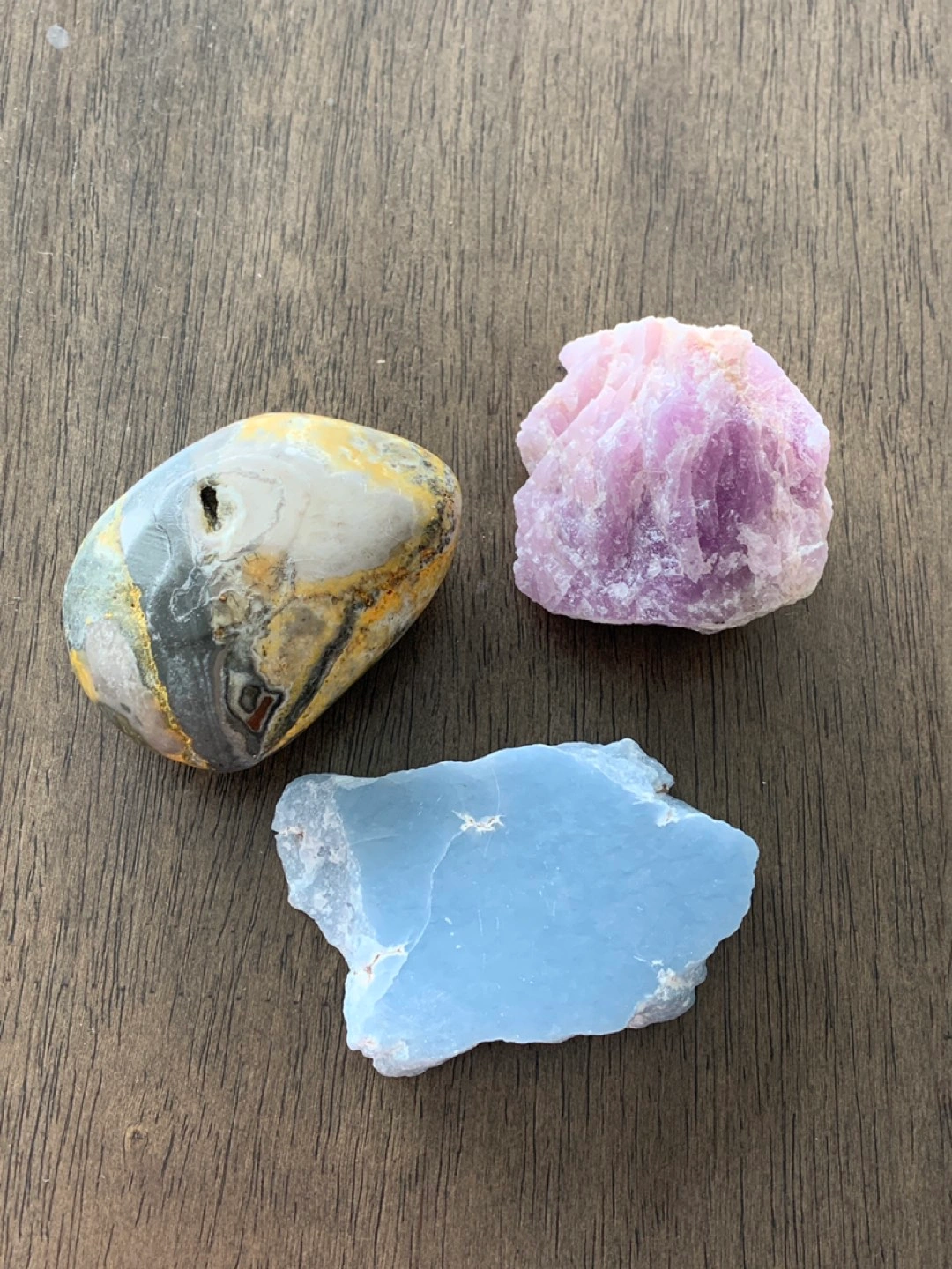 These are genuine crystals from my personal collection. Just trying to clear out some space. Post/price is for all 3 pieces, however I can sell them separately if there is one piece you like. Kunzite raw piece (Unconditional love, calming nerves, enhance self expression) Angelite slab (Improve spirituality and awareness, promotes communication, relaxing energy) Bumblebee Jasper palm stone (Improves happiness and joy, energizes you and frees blocked energy, promotes honesty)