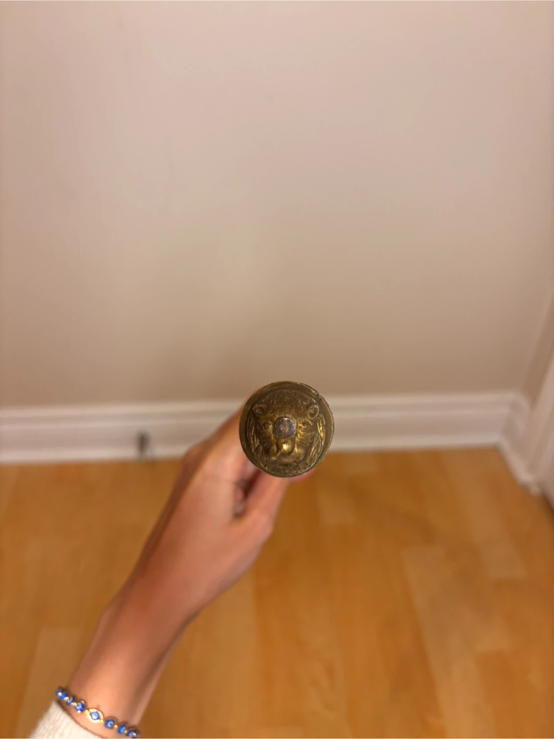 Antique cane sword that has been passed down through the family for generations, over 100 years old. Features a concealed steel blade housed within a wooden walking cane, with decorative handle and metal detailing.