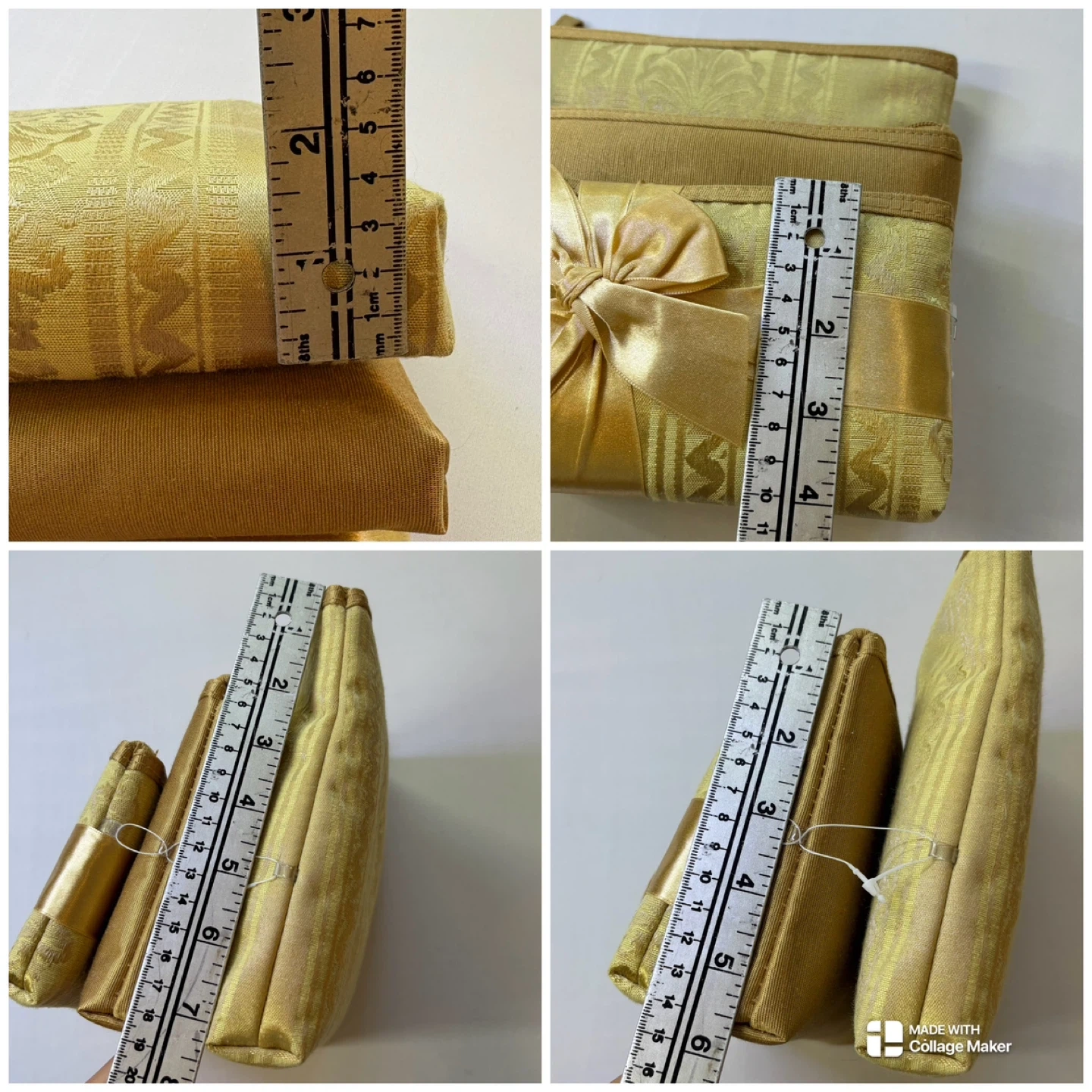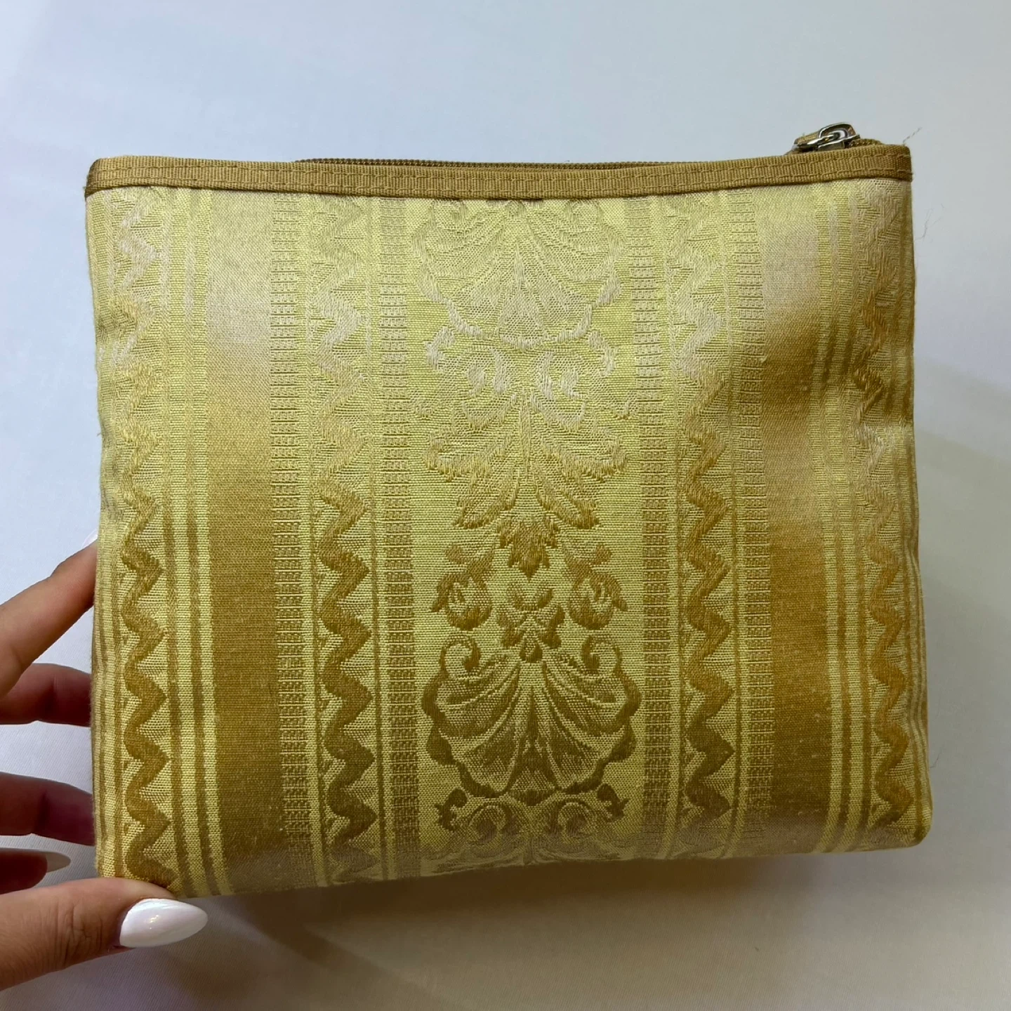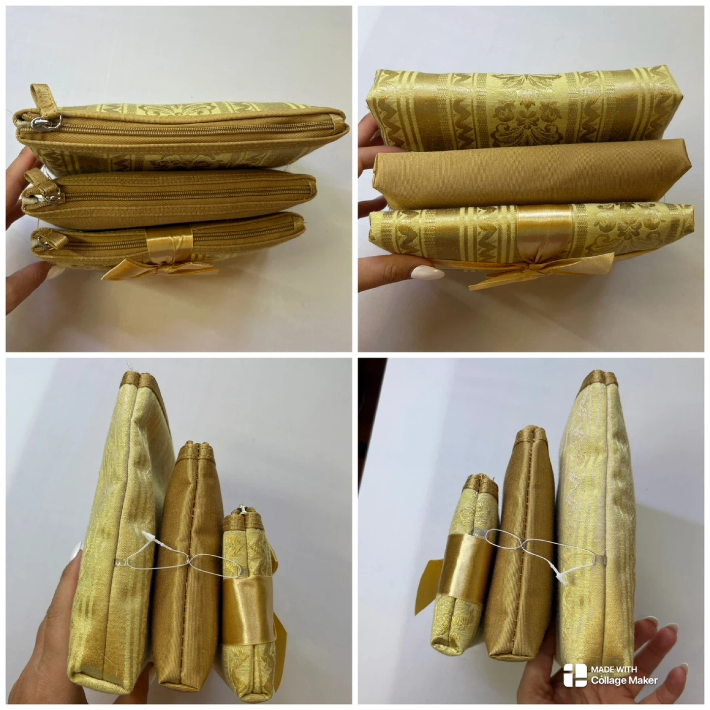 Gold Brocade Cosmetic Bag Set 3 Piece Nesting Makeup Pouches
