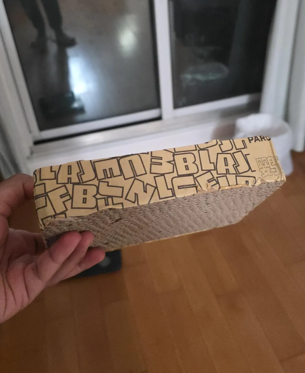 Here's a cat scratcher from Feline Be Mine! It's a great way to keep your kitty entertained and their claws healthy. It shows some signs of use, but still has plenty of life left in it