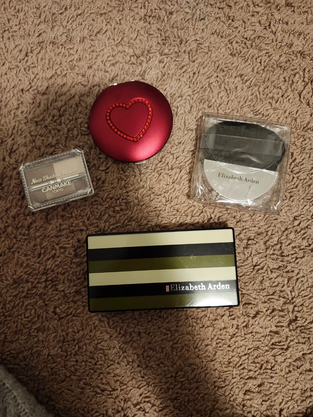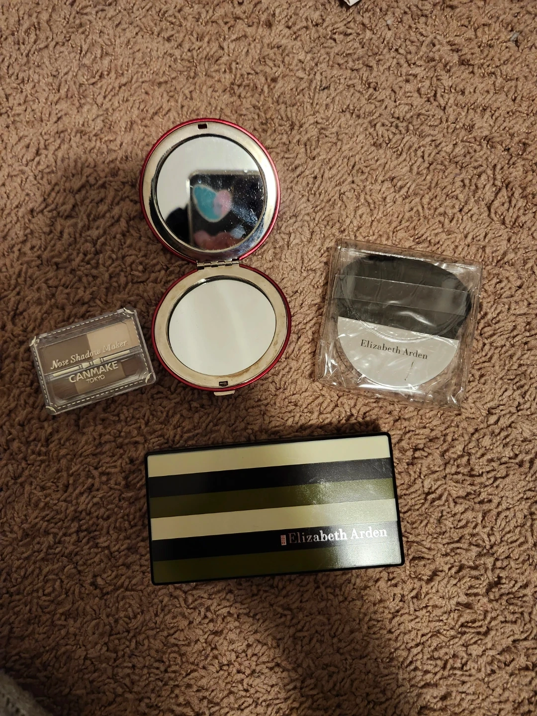 Selling a bundle of Elizabeth Arden and Canmake cosmetics! Includes an Elizabeth Arden compact and powder puff, along with a Canmake Nose Shadow Maker. Perfect for adding to your makeup collection!