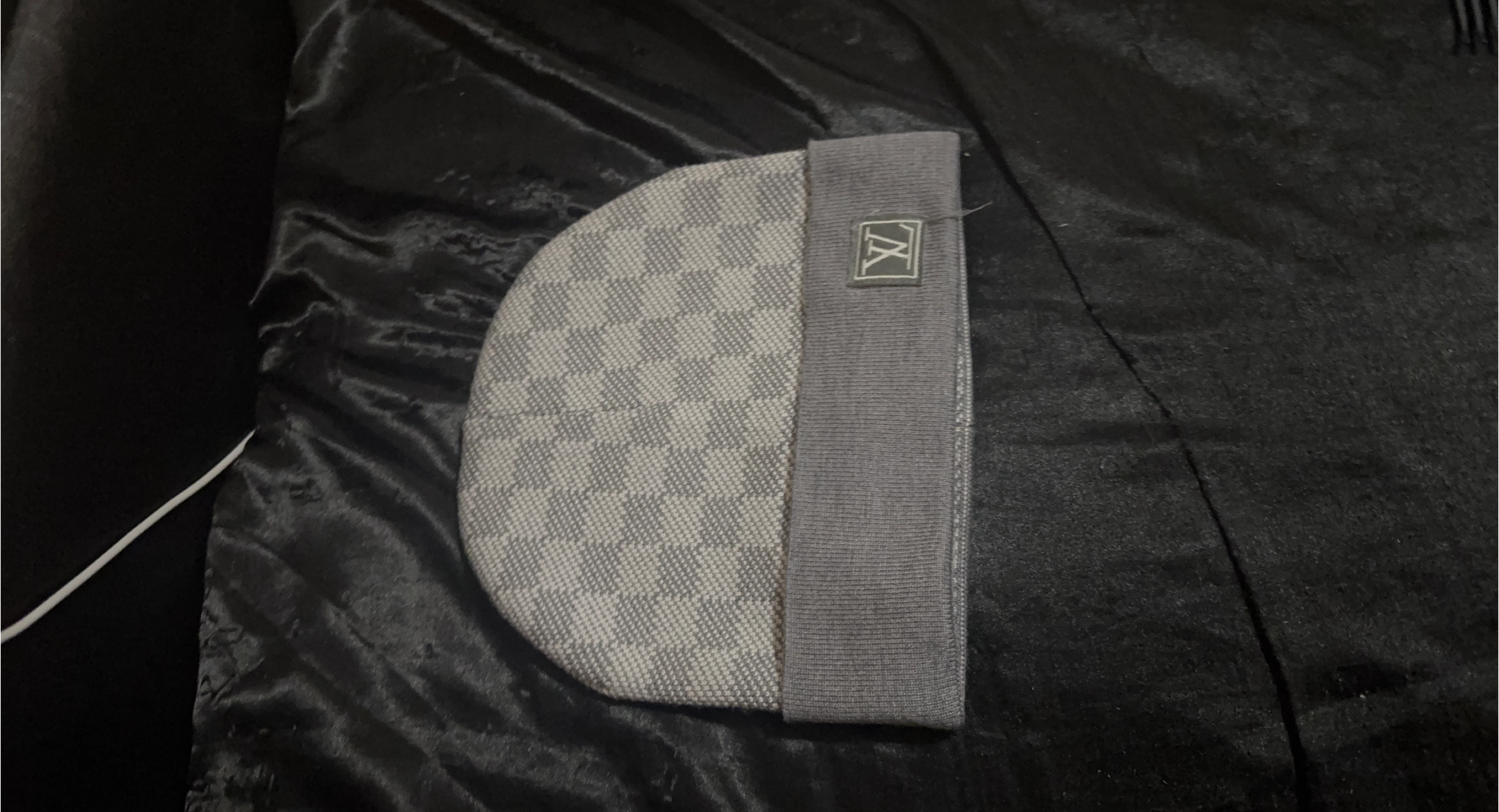 Selling a stylish Louis Vuitton beanie in grey. It's in great condition and ready to keep you warm!