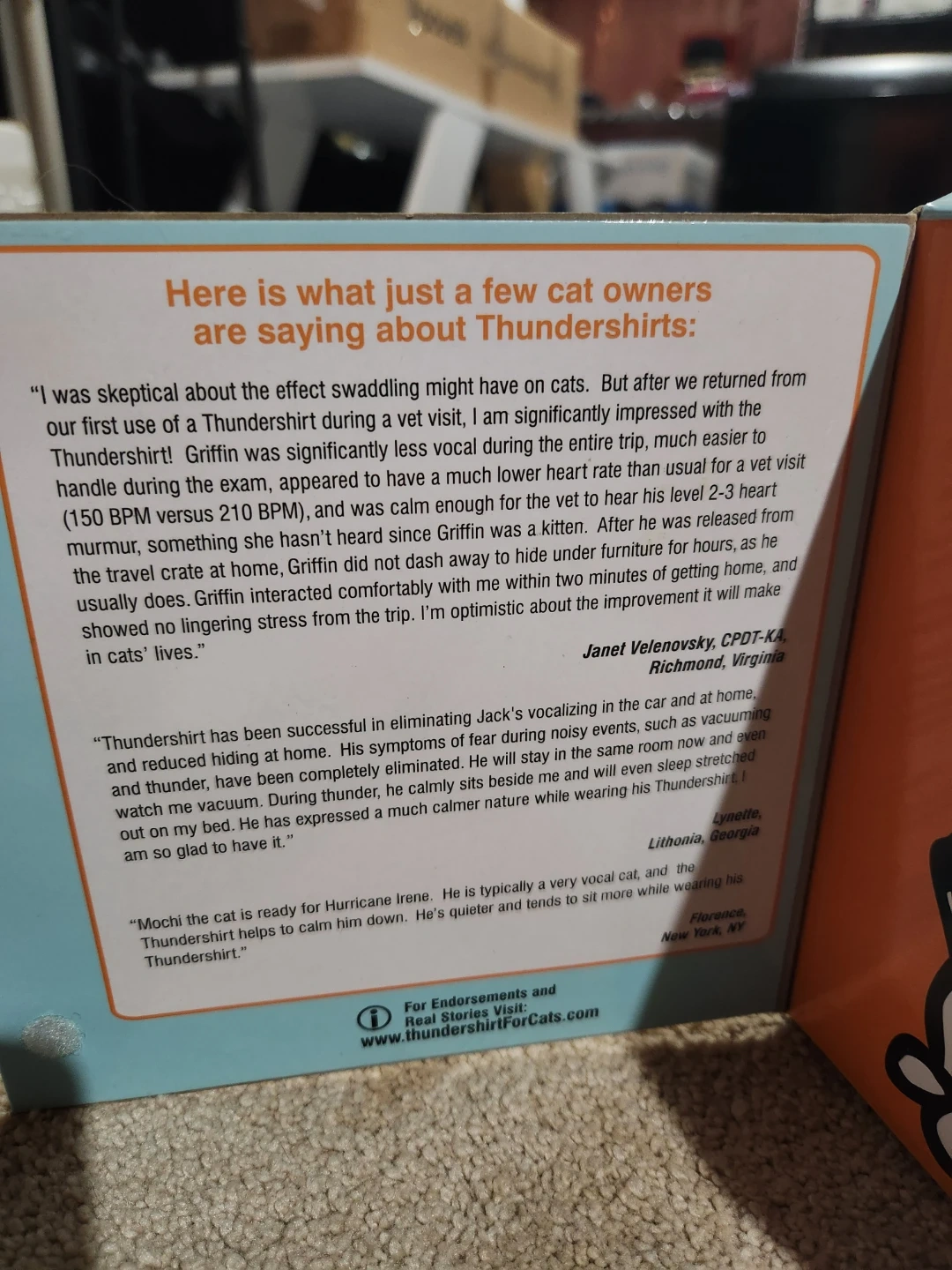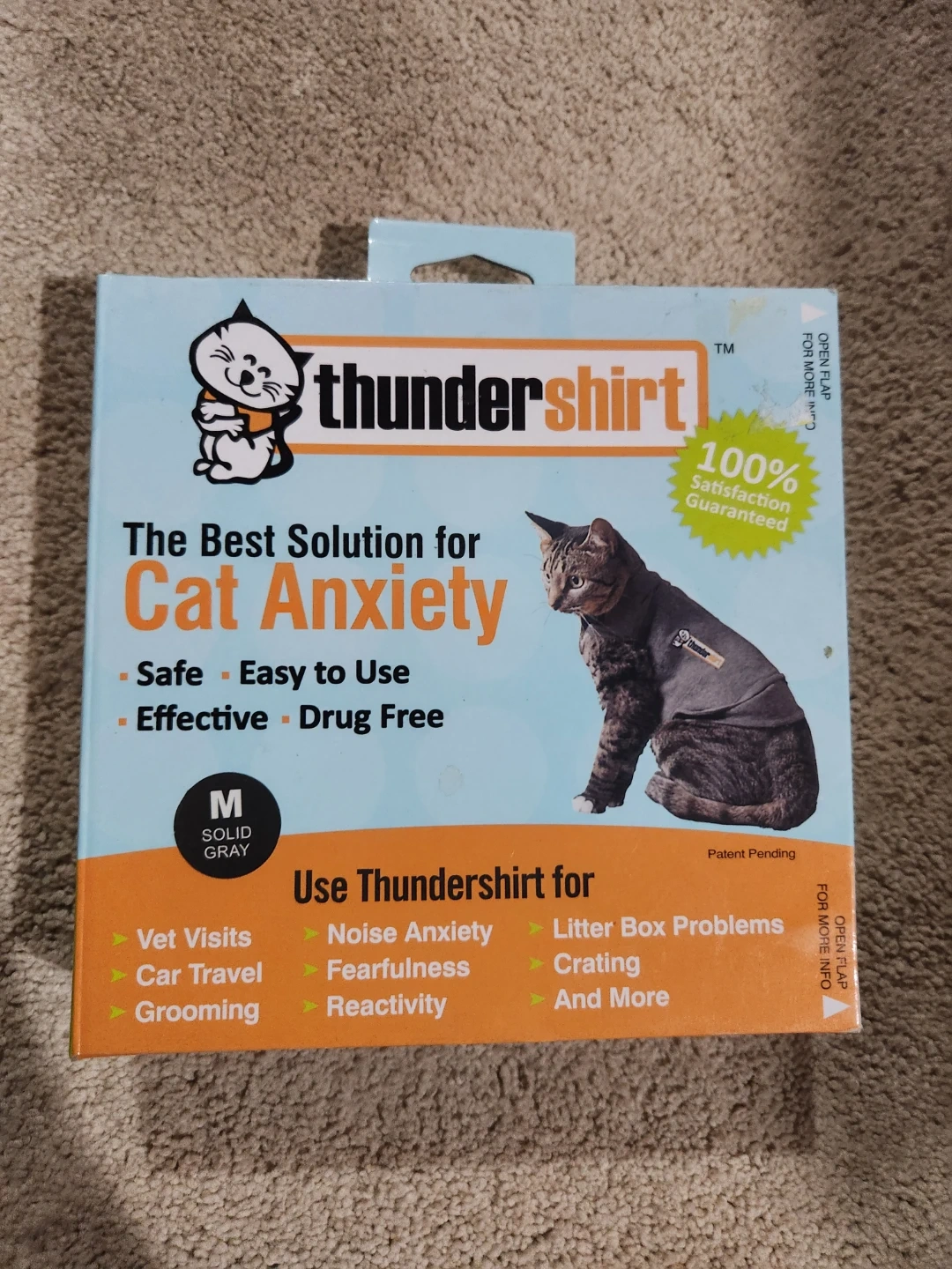 Selling a Thundershirt for cat anxiety in size medium! It's designed to help calm cats during stressful situations like vet visits, noise anxiety, and travel. The Thundershirt applies gentle, constant pressure to your cat's torso, which can have a calming effect.