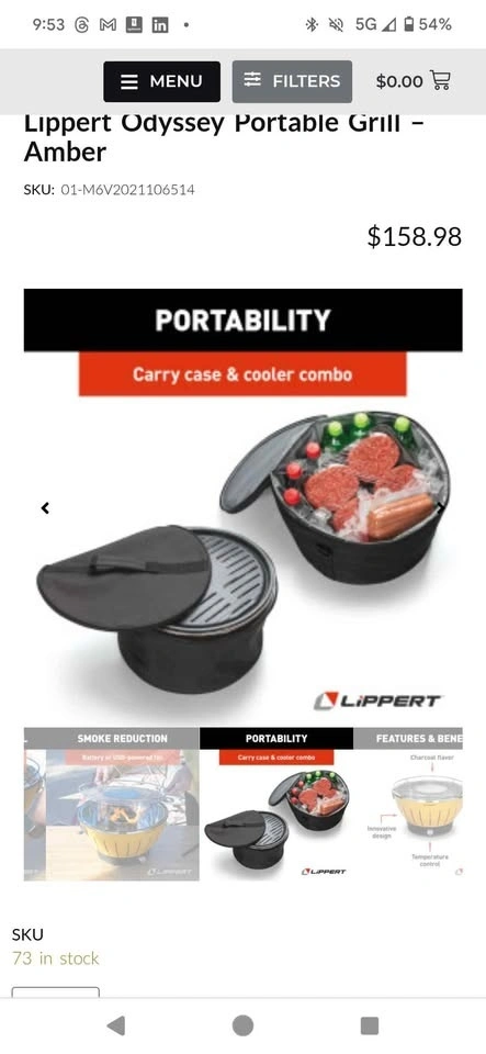 Brand new Charcoal portable grill with fan powered by batteries or power bank. Comes with a cooler carry case.