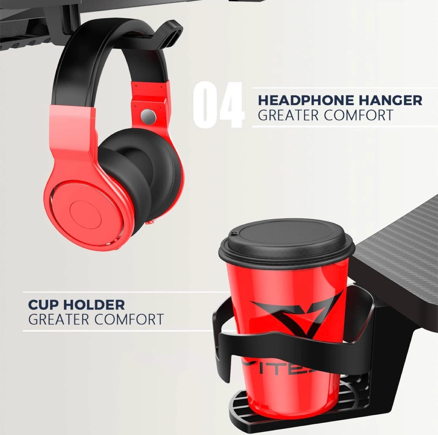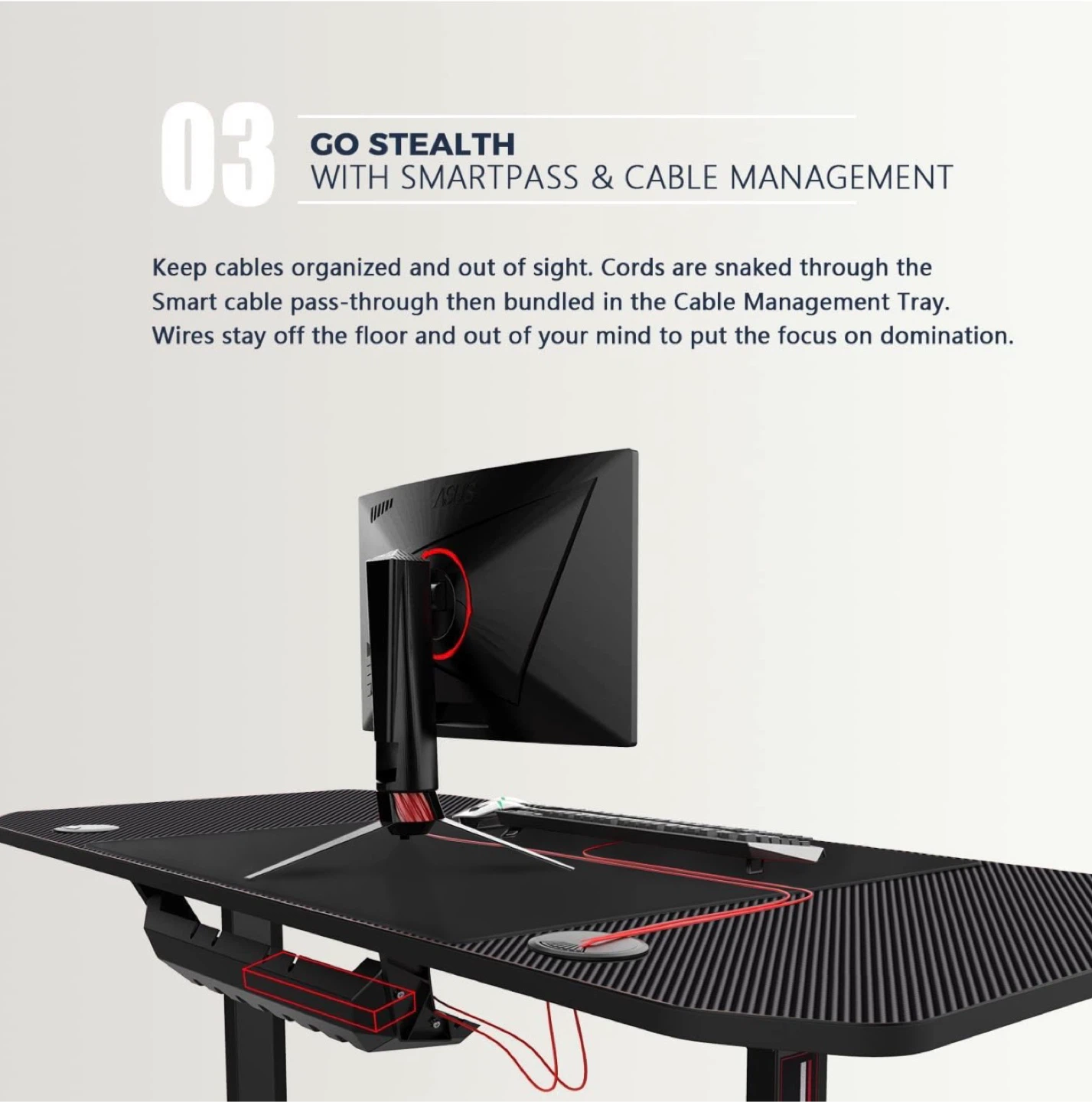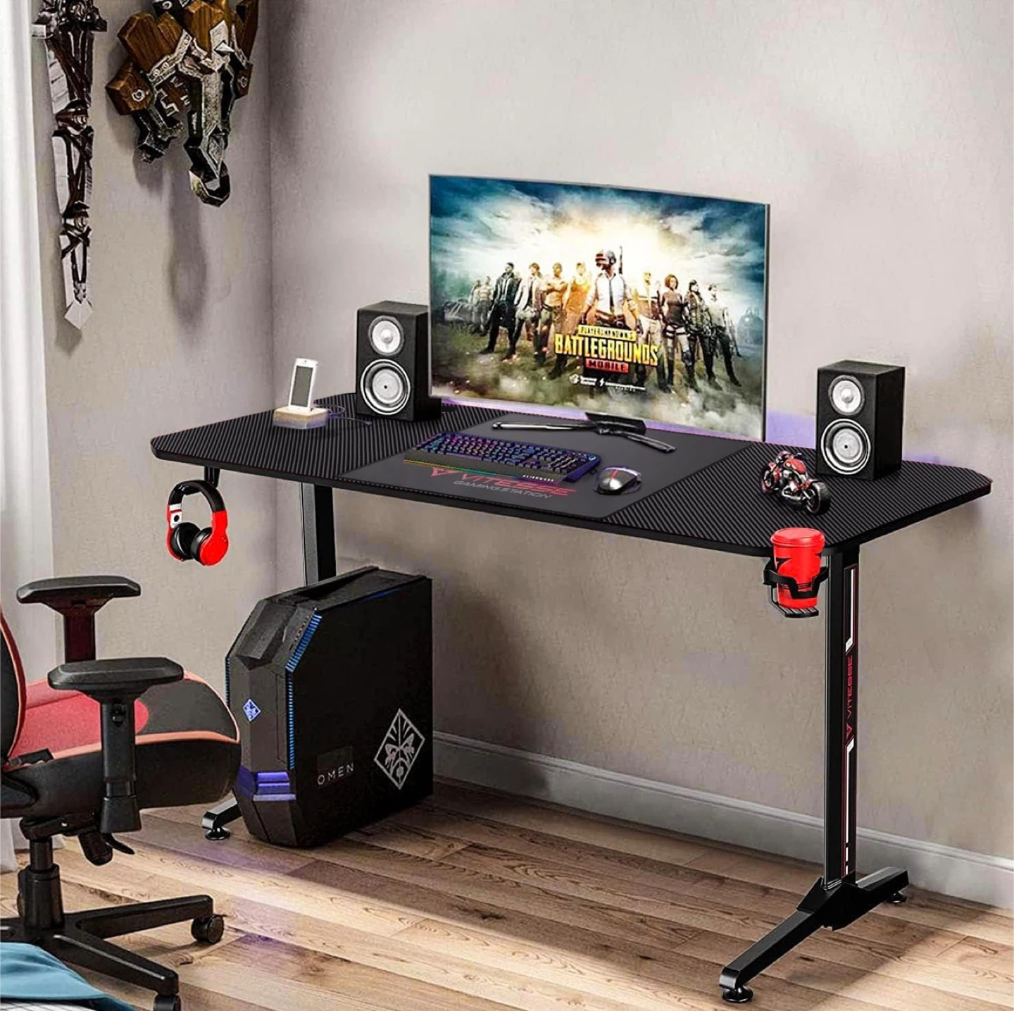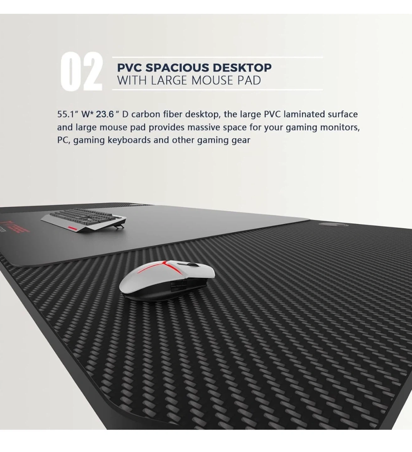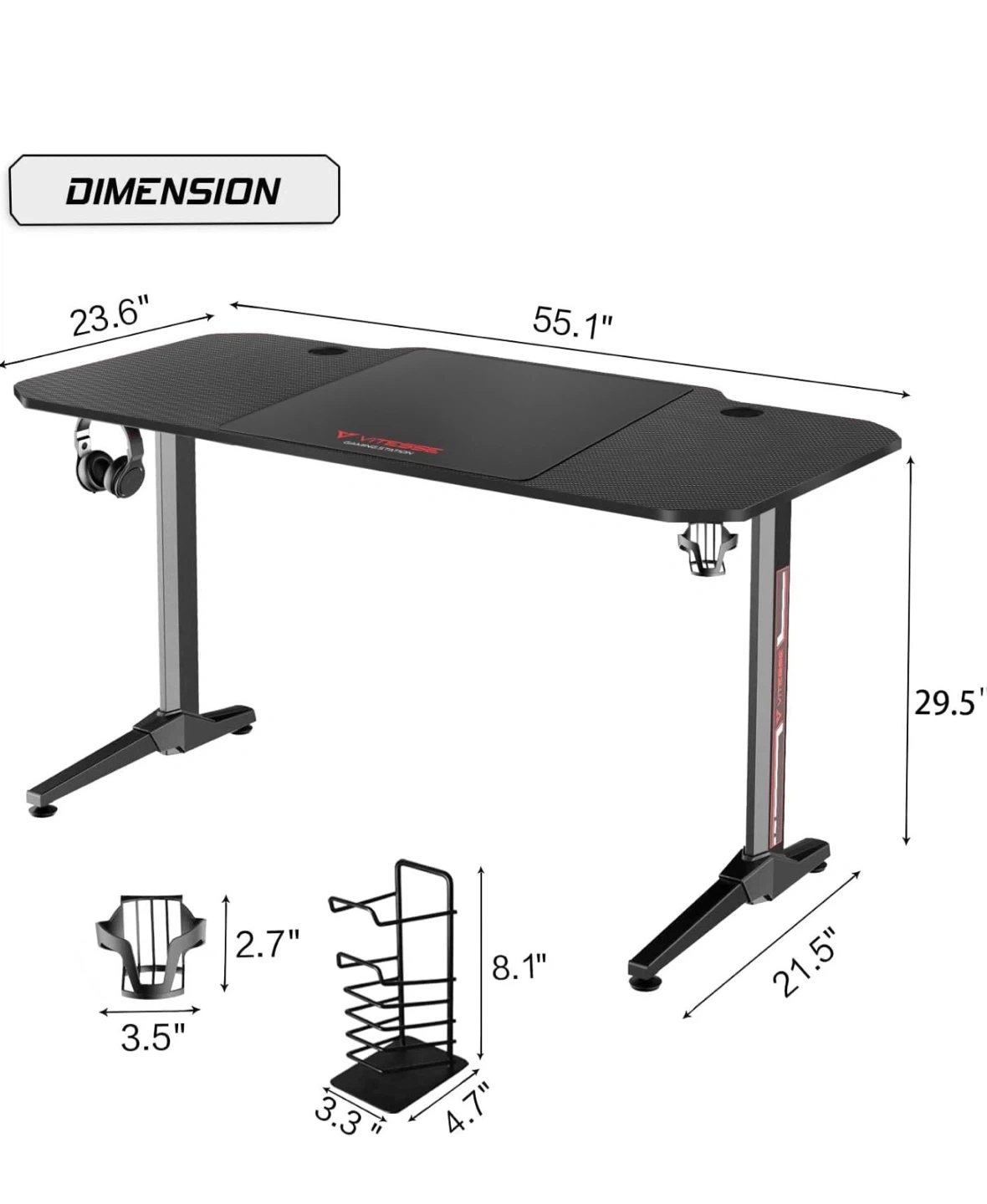 Selling a VITESSSE gaming desk in excellent condition! It features a spacious PVC desktop with a large mouse pad, measuring 55.1" wide and 23.6" deep. The desk also has smart cable management to keep your cords organized and out of sight