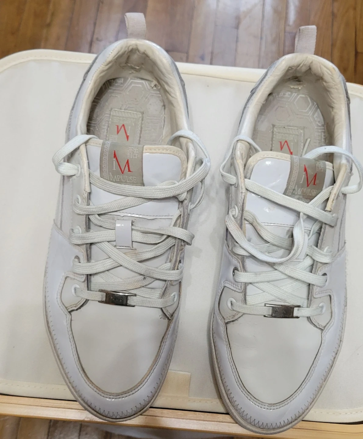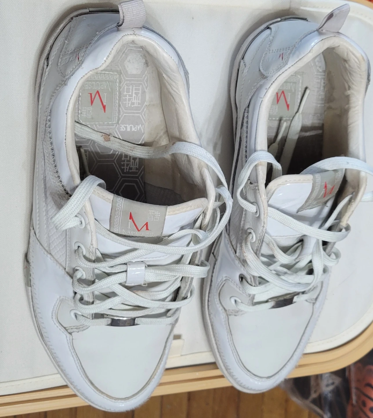 Selling a pair of white MPulse sneakers. They show some signs of wear, but still have lots of life left! Great for casual wear or working out.
