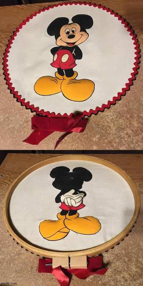 VINTAGE DISNEY MICKEY MOUSE NEEDLEPOINT CROSS STITCH 18” X 20”