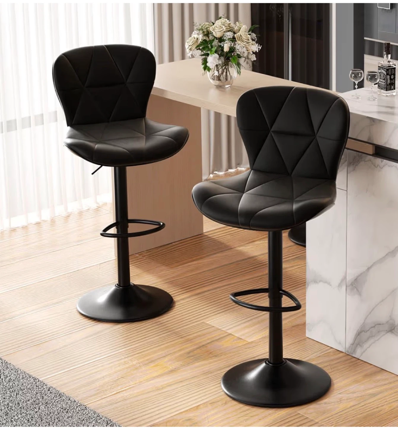 Set of 2 black bar stools with an adjustable height. It's in great shape and would look great in any kitchen or bar area. Stain and scratch resistant material. The seat is comfortable and stylish!