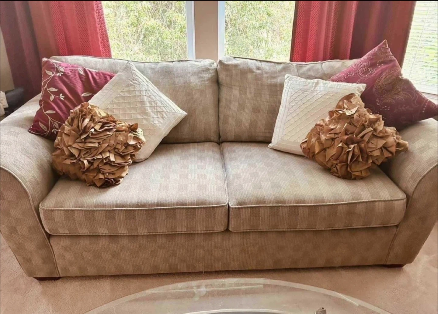 The 6 cushions seen on sides of sofa are not included, but are for sale separately