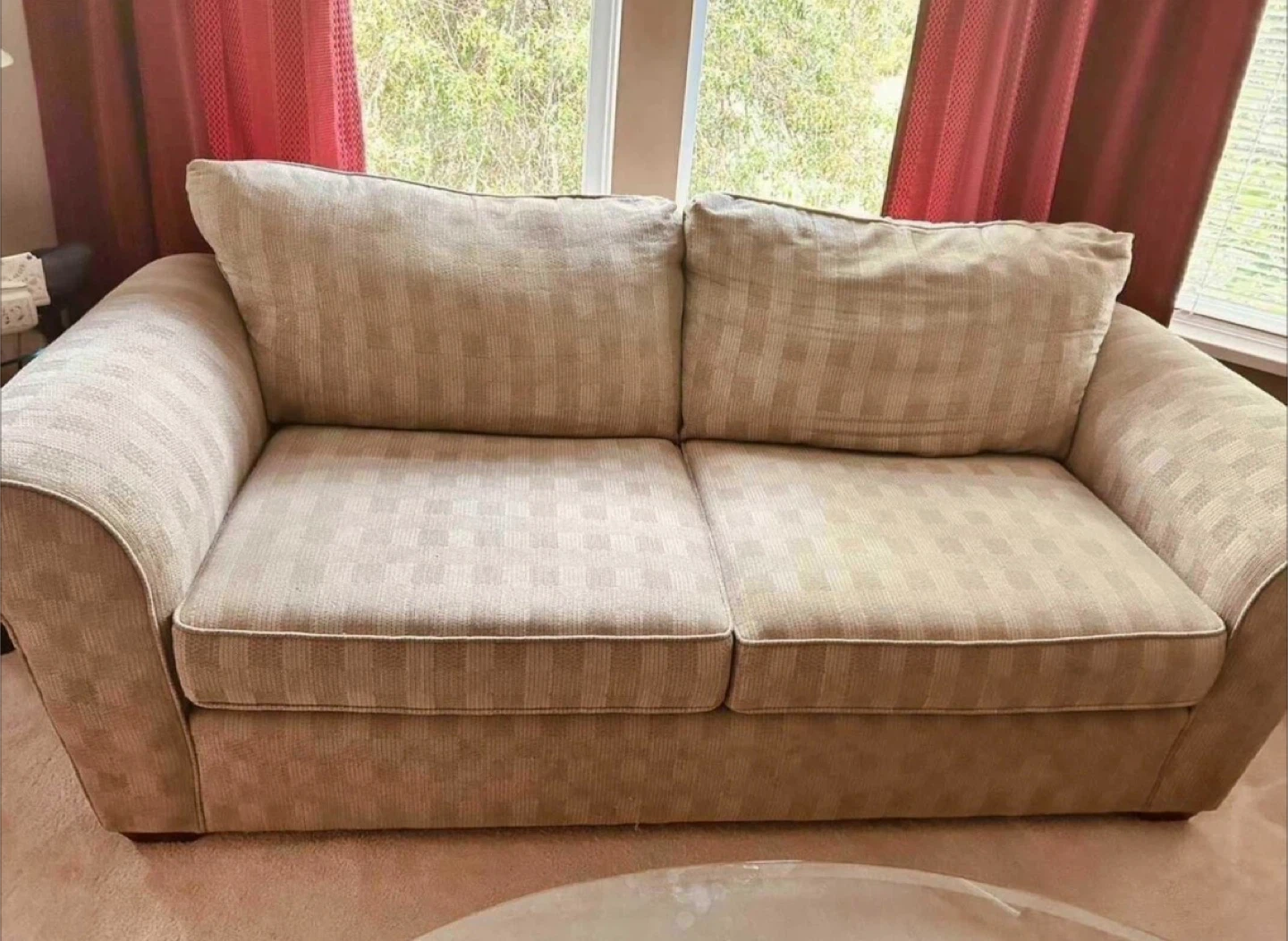 88 inches wide . Neutral color