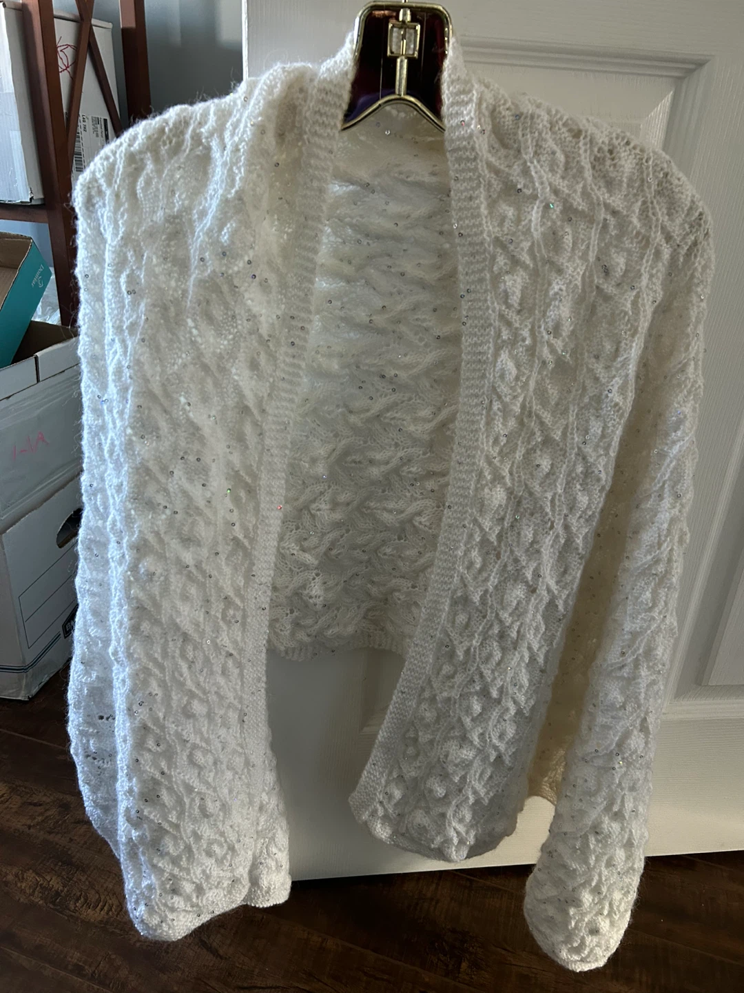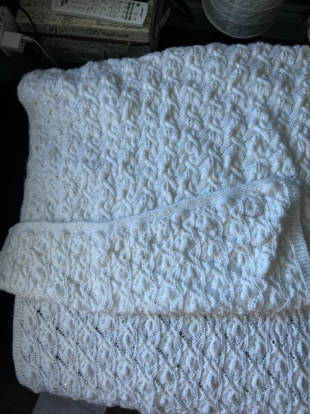 Selling a cozy white knit wrap. Can be used as a scarf as well. It's in great condition and ready to keep you warm! Approximately 2” wide & 5’6” long
