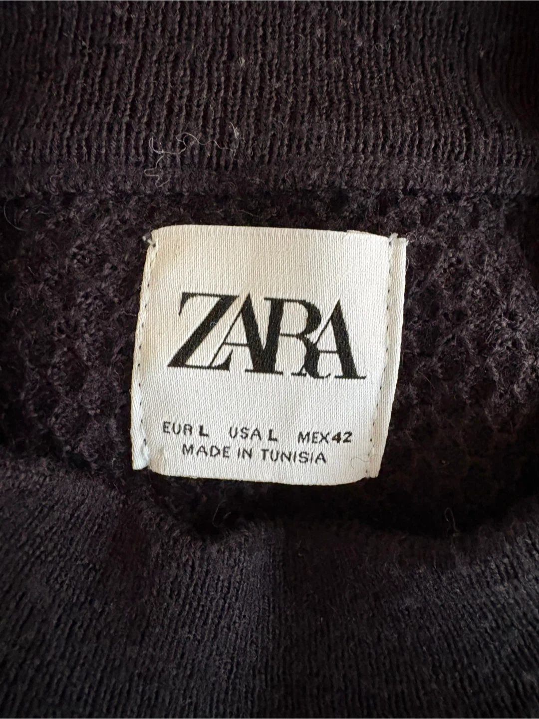 Selling a Zara black knit sweater in size L. It's in great condition and ready for a new owner! The material is soft and comfortable, perfect for staying warm on chilly days