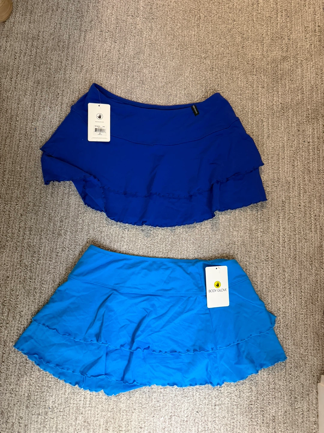 Two Body Glove skorts in great condition! One is a vibrant blue, and the other is a lighter blue. Perfect for tennis, golf, or just everyday wear!